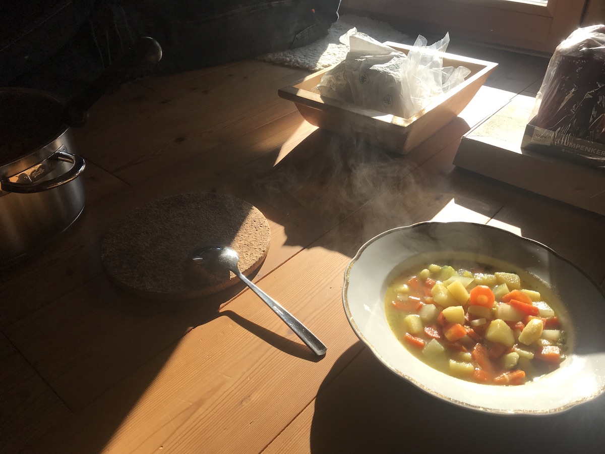 Am Nachmittag ist der Mann bei seinem Nachmittagskurs in der Schule. Ich übe mit dem Wolf und allein Trompete. Langsam kommen auch die hohen Töne in Stille Nacht. Der Wolf erarbeitet sich noch immer He’s a pirate aus Fluch der Karibik. Später treffe ich eine Freundin auf einen Spaziergang. Wir gehen eine Stunde durch die Novembersonne tanken. Es wird schnell kalt, wenn die Sonne weg ist. Brr. Nach dem Spaziergang fühle ich mich schlapp und unterzuckert, obwohl ich vorher gegessen habe. Ich esse ein Brot und mache mir danach noch einen warmen Grießbrei mit Zimtzucker.Das komische Gefühl bleibt jedoch den ganzen Abend mit leichtem Kopfweh, frieren und Erschöpfung.
