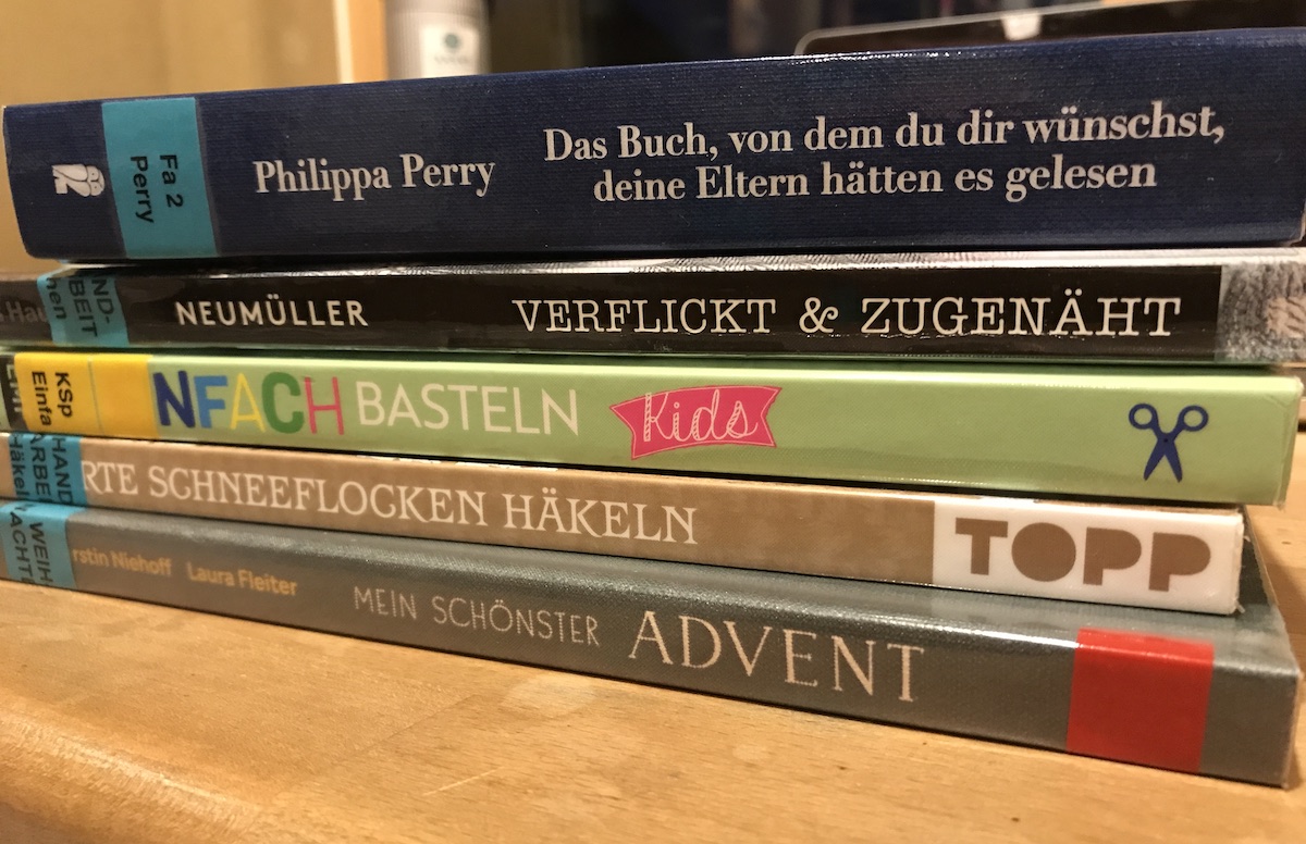 Am Nachmittag war ich mit den Jungs in der Bibliothek. Neben 8 Hörspielen und 4 Brettspielen habe ich mir noch 5 Bücher mitgenommen zum Schmökern und inspirieren lassen. Eins davon habe ich gleich nach dem Abendessen angeschaut und darin so viele leckere Rezepte und Geschenk-/Deko-Ideen gefunden. Ganze 12 Einmerker habe ich mir in das Buch “Mein schönster Advent” von Kerstin Niehoff und Laura Fleiter geklebt. Mal sehen, was davon ich umsetzen werde. Auf jeden Fall gefallen mir die Rezepte, Fotos und Ideen. Wer die beiden Autorinnen ein bisschen kennenlernen möchte, schaut auf ihrem Blog “waldsinnig” vorbei (den kannte ich vorher nicht). Tolle Entdeckung!