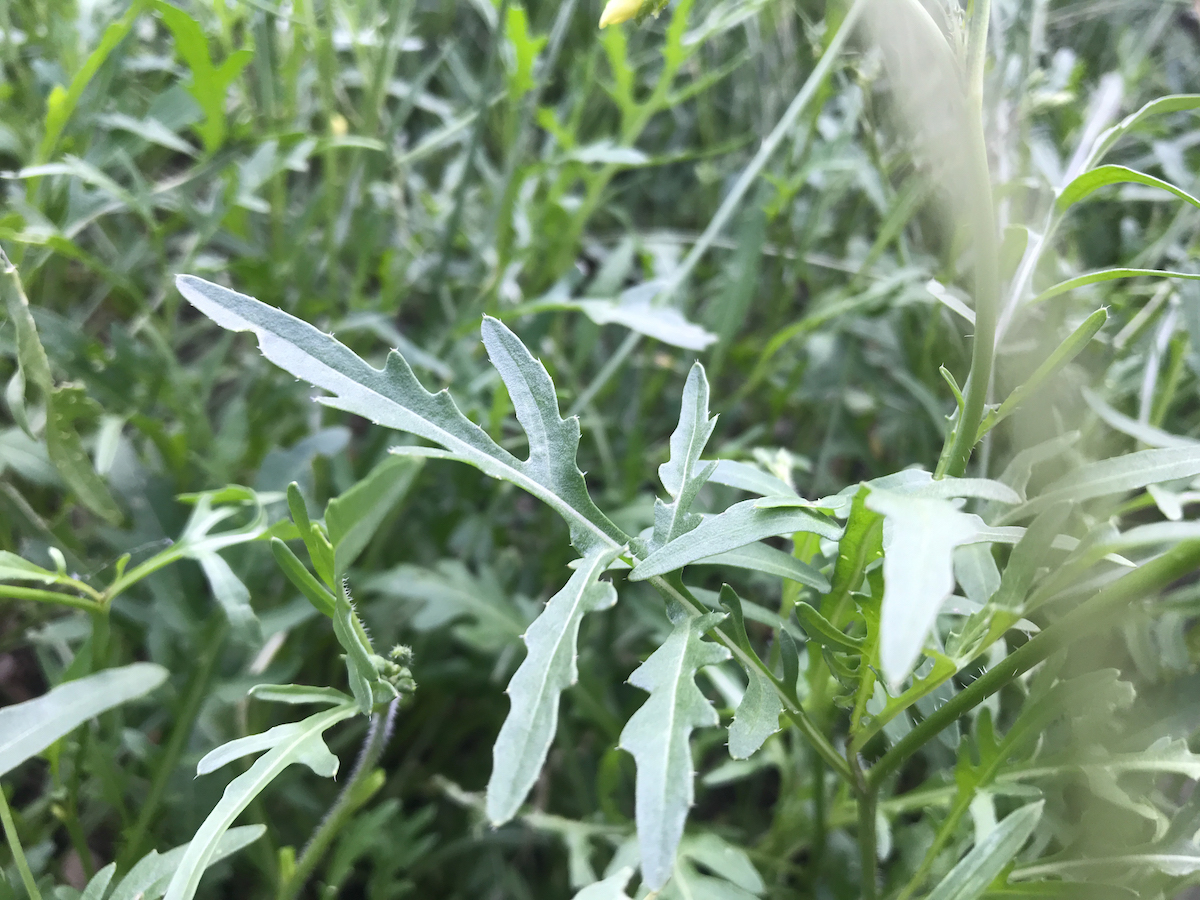 Im Beet mit der wilden Rauke geht es üppig zu. Ich hatte sie im Frühjahr ausgesät und mich geärgert, dass nicht nur die Schnecken den Pflanzen zusetzen, sondern auch die Erdflöhe. Ganz verlöchert und unansehlich waren die Blätter. Aber nun haben sie sich erholt und wuchern kräftig im Beet herum.
