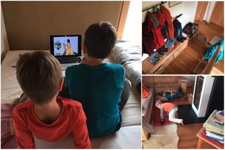 Die Arbeitszeit genoss ich sehr. Ich konnte endlich fokussiert und zügig meine Liste abarbeiten. Die Zeit verflog und plötzlich war es 12 Uhr. Zeit, den Wolf an der Schule einzusammeln. Er war entspannt und erzählte ein bisschen von seinem ersten Schultag. Dann setzte er sich an meinen Computer, um Let’s-Play-Videos auf Youtube zu schauen. Dienstag ist hier Kucktag, da dürfen die Kinder Filme schauen, denn Dienstags kommt die Putzfrau. Während sie durchs Haus wirbelt, schauen die Kinder einen Film und sind verräumt.