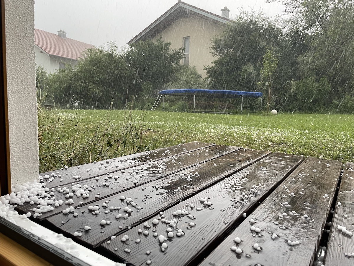 Die Woche ist so voll, dass sie mir fast den Atem nimmt. Das Wetter macht mich müde, wie ich schon lange nicht mehr müde war. Tagsüber drückt es bis sich der Himmel in Regenfällen und Gewittern entlädt. Nach unserem Hagel am Montag, gab es ein weiteres Unwetter ein paar Kilometer weiter. Die Auswirkungen habe ich auf dem Weg zur Posaunenchorprobe gesehen. Ich hab noch nie so viel und so großen Hagel erlebt. Es fasziniert mich sehr. Das Unwetter ist aber nicht nur unschön, sondern hat auch wild-romantische Seiten. (Das Foto ist am Gemeindehaus in Ebersberg entstanden. Dort ist dann dieser Haufen zusammengekommen.)