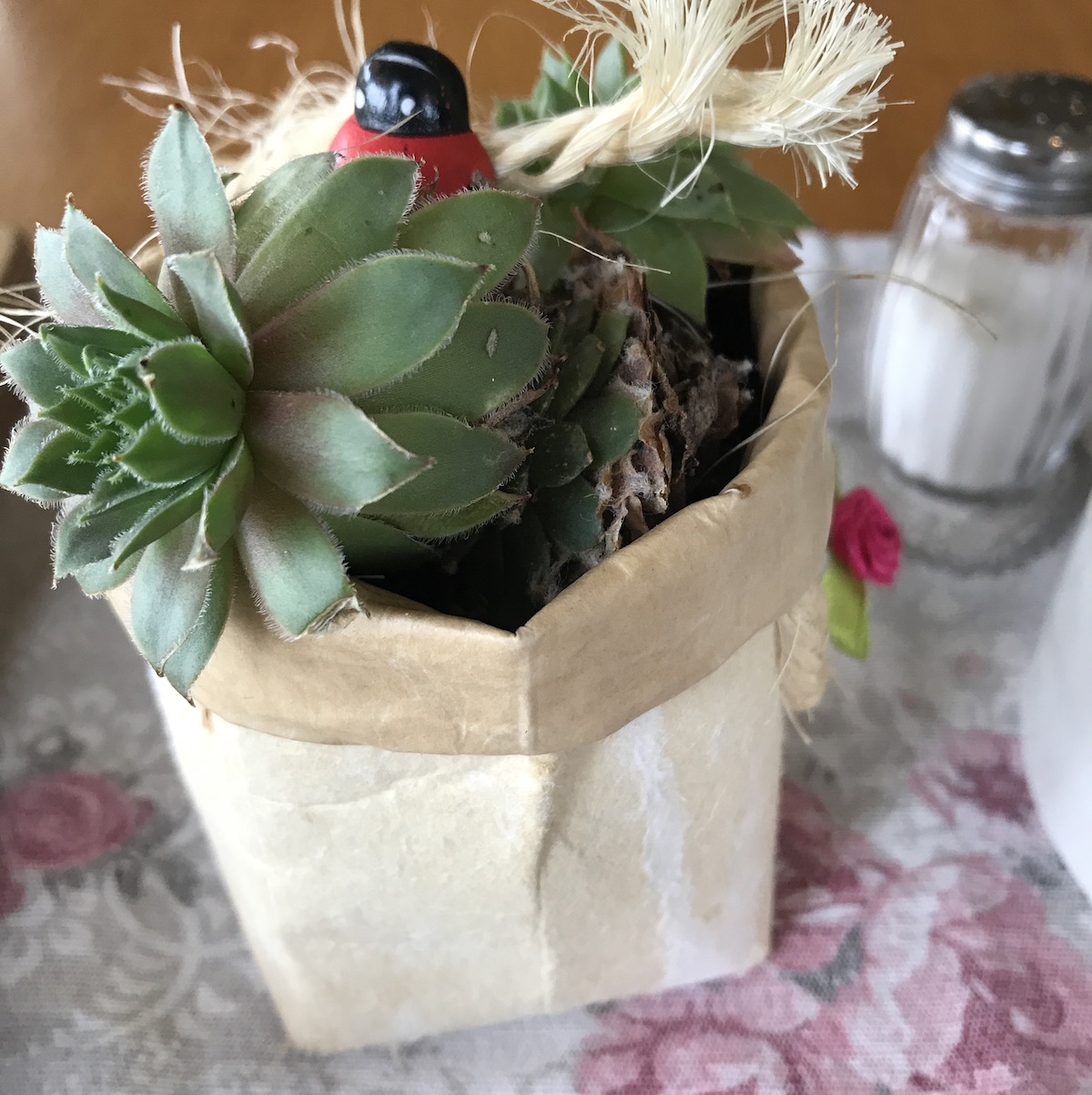Einen Spaziergang mache ich auch noch, egal wie das Wetter ist. Damit habe ich wieder begonnen, das tut mir gut. Einmal durchpusten. Gestern bin ich gleich zweimal eine dreiviertelstunde draussen gewesen. Einmal mit einer Freundin, nachdem wir genüsslich im Café gefrühstückt und Urlaubsmitbringsel sowie Herzensthemen ausgetauscht haben. Und später nochmal mit der Tochter, die mich um eine Hundespaziergangbegleitrunde gebeten hatte. Beides war sehr schön. Mit der Tochter habe ich vereinbahrt, dass wir uns nun regelmässig zu einem Date verabreden wollen. Wir sehen uns ja kaum noch und somit bleibt nicht viel Zeit für echten Kontakt, was wir beide sehr schade finden. Mal sehen, wie sich diese Idee entwickelt. Im Café ist mir die Tischdeko aufgefallen. Ein Upcycling von leeren Tetrapacks Blumentöpfen. Die bearbeiteten Tetrapacks wurden dekoriert und mit Erde befüllt und Sukkulenten bepflanzt. Eine durchaus nette Idee. Hier hab ich eine Anleitung gefunden. Auf pinterest gibt es noch viele weitere Ideen. Vielleicht probieren wir das beim nächsten Kreativabend?