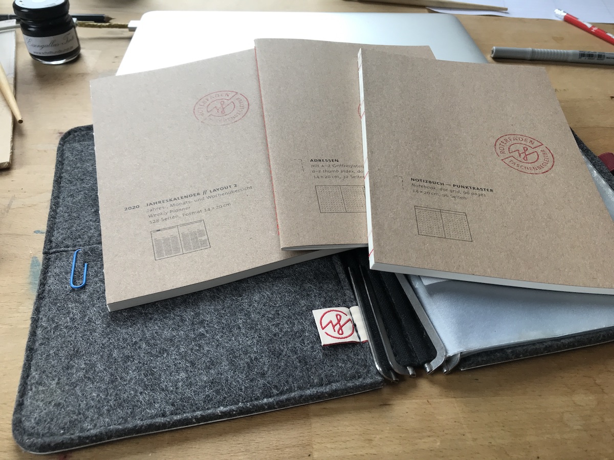 Gestern ist meine Kalenderbestellung von Roterfaden gekommen. Ich bestücke meinen Taschenbegleiter und freue mich schon, wenn ich die ersten Termine für 2020 reinschreiben kann. Mein Bulletjournal wird vom Leuchtturm Hardcover in ein Roterfaden Softcover wandern. Mal sehen, ob das was taugt. Wenn dem so ist, habe ich endlich alles beeinander und muss nicht mit drei Büchern auf dem schreibtisch herumwerkeln. Ich habe mir auch ein neues Adressheftchen dazubestellt. Meins von 2013 sieht schon etwas zerfledert aus und ist nicht mehr so richtig aktuell.