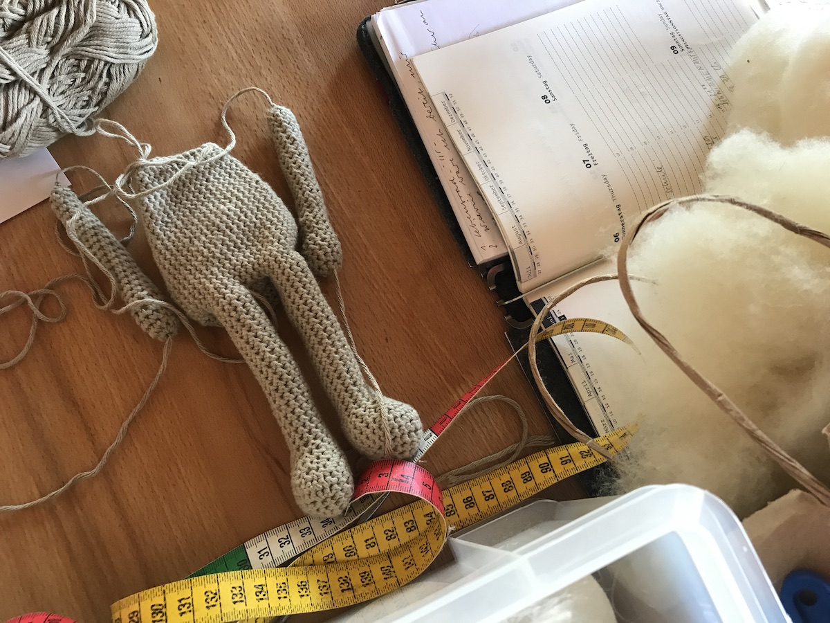 - Das Häkelpüppchen von Octoberrosedolls. Da habe ich den Körper und die Arme fertig, der Kopf braucht noch ein Gesicht und Haare.