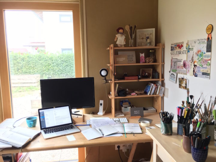 Ich frühstücke mit den Jungs, die Tochter schläft aus. Es ist ein unruhiges Frühstück. Der Sterngucker meckert und motzt, weil alles nicht da ist, was er sich vorstellt zu essen. Der Wolf brät sich einen Maiskolben zum Frühstück, weil er nichts anderes findet, was er essen mag. Dann verkrümeln sich alle zum Spielen in ihre Zimmer, und plötzlich ist Ruhe. Ich trinke gemütlich meinen Tee, beginne einen Brief und stricke ein paar Reihen an einer Socke. Dann gehe ich ins Büro und telefoniere mich durch meine am Vorabend geschriebene Liste, um Termine zu vereinbahren und Dinge zu klären. Ich hab gestern schon viel geschafft (Ich habe mich in ein Newsletter-Tool reingefuchst. Es wird jetzt einen Kallimagie-Newsletter geben für alle interessierten Schreibbegeisterten). Ich bin motiviert.
