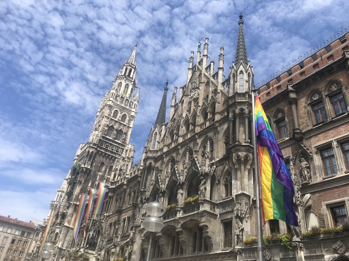 Der Garten erfreut mich ebenso wie die Post im Briefkasten. Ich habe lange keine Briefe mehr bekommen, jetzt haben wieder liebevolle Worte zu mir gefunden – wie schön! Letzten Freitag war ich nach meiner Elternarbeitszeit an der Tochterschule (Vorabitur-Aufsicht) ein bisschen mit der Tochter in der Stadt bummeln, was mir sehr gefallen hat. Dabei habe ich mir ein T-Shirt und ein schönes Leinen-Oberteil beim Muji gegönnt. Ich mag es, wenn jetzt die Regenbogenflaggen hängen. Das sieht so schön aus. Können die nicht immer wehen?