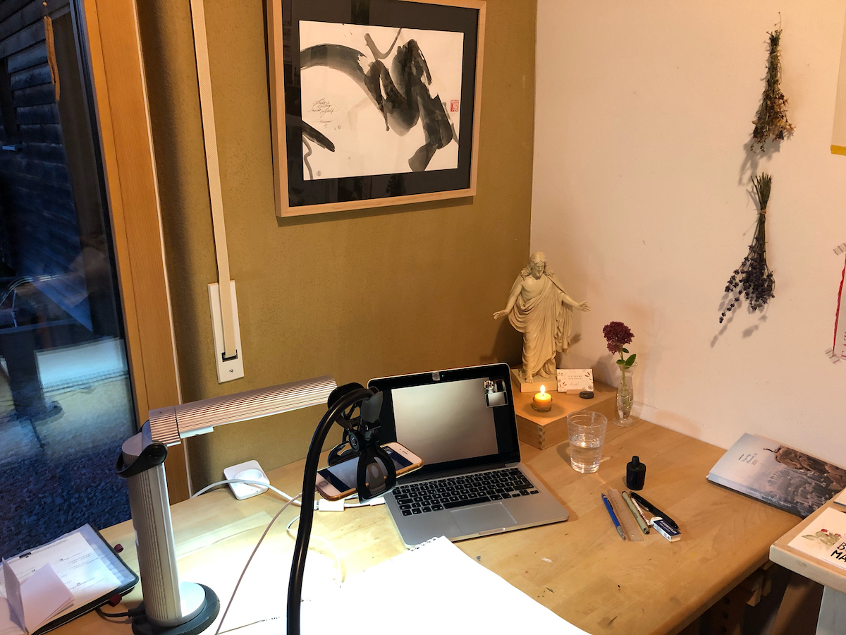 Auch mein Schriftzauberkurs ist gut angelaufen. Gestern hatte ich den ersten Zoomcall zusätzlich zum Kurs. Der direkte Kontakt macht mir immer am meisten Freude. Dann merke ich, wo die Teilnehmerinnen stehen und was ich ihnen noch zeigen und beibringen kann. Ausserdem bekomme ich Feedback und meine Arbeit geht nicht so ins Leere. Letzteres ist natürlich nur eine zeitweise Empfindung, denn ins Leere geht meine Arbeit natürlich nicht. Das hat mir ein riesiger Poststapel in dieser Woche gezeigt. Wertschätzende Briefe von den Teilnehmerinnen meines August Art Journal landeten in meinem Briefkasten. Wie schön! Ausserdem noch ein kleines Kurspackerl für einen Schreibkurs, den ich bei Hanna Buiting gebucht habe. Der findet am 26.September online statt, aber zum Kurs gab es ein kleines analoges Päckchen. Wie schön! Ich bin schon ganz gespannt.