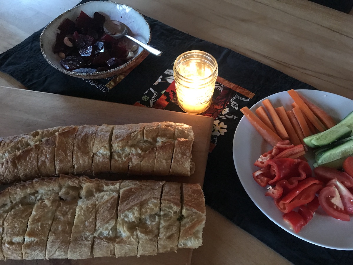 Als ich neulich aus der Schule nach Hause kam, wo ich Mittwochs für das Nachmittagsangebot Aufsicht habe und den Bastelkurs leite, war die Tochter da und hat Suppe für das Abendessen gekocht. Dann haben wir mal wieder alle zum Abendessen beeinander gesessen. Das war schön. Ich merke, wie mir das trotz Trubel und Leben am Tisch (oder gerade deswegen?) sehr gefällt.