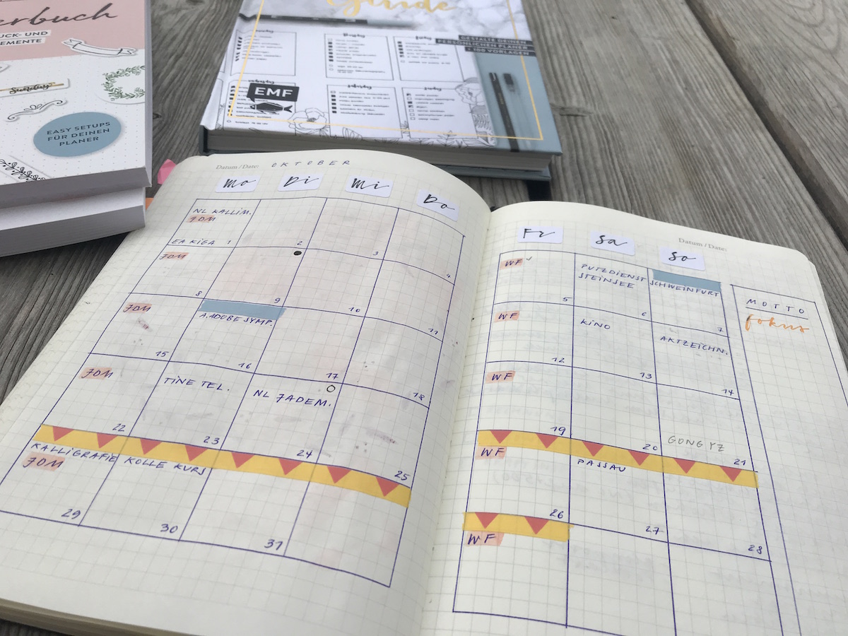 Diesmal hab ich sogar eine Monatsübersicht angelegt, um einen Überblick über den Oktober zu haben. Da stehen meine Abwesenheiten und Reisen drin, aber auch Veröffentlichungstage meiner Onlinekurse und andere wichtige Termine, die ich im Blick haben muss, um rechtzeitig meine Aufgaben zu erledigen.