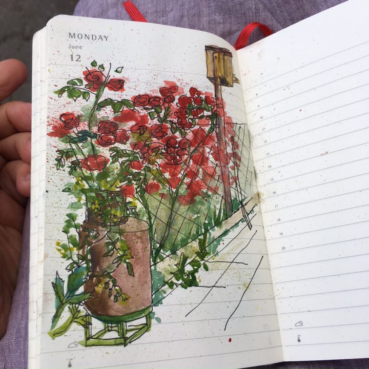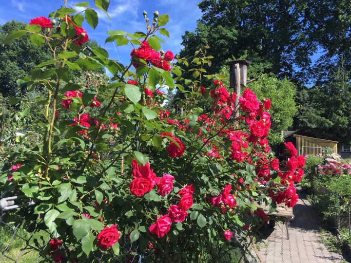 Der Garten blüht und grünt in einer unsagbaren Fülle. Überall duften Rosen und piepsen Stare in ihren Kästen, bereit jeden Moment auszufliegen. Ich lungere den ganzen Tage zwischen Couch, Esstisch und Garten herum, esse frische Erdbeeren und grünen Salat mit Zitronensaft und Zucker. Meine trüben Gedanken und meine Sorgen haben gerade keinen Platz.