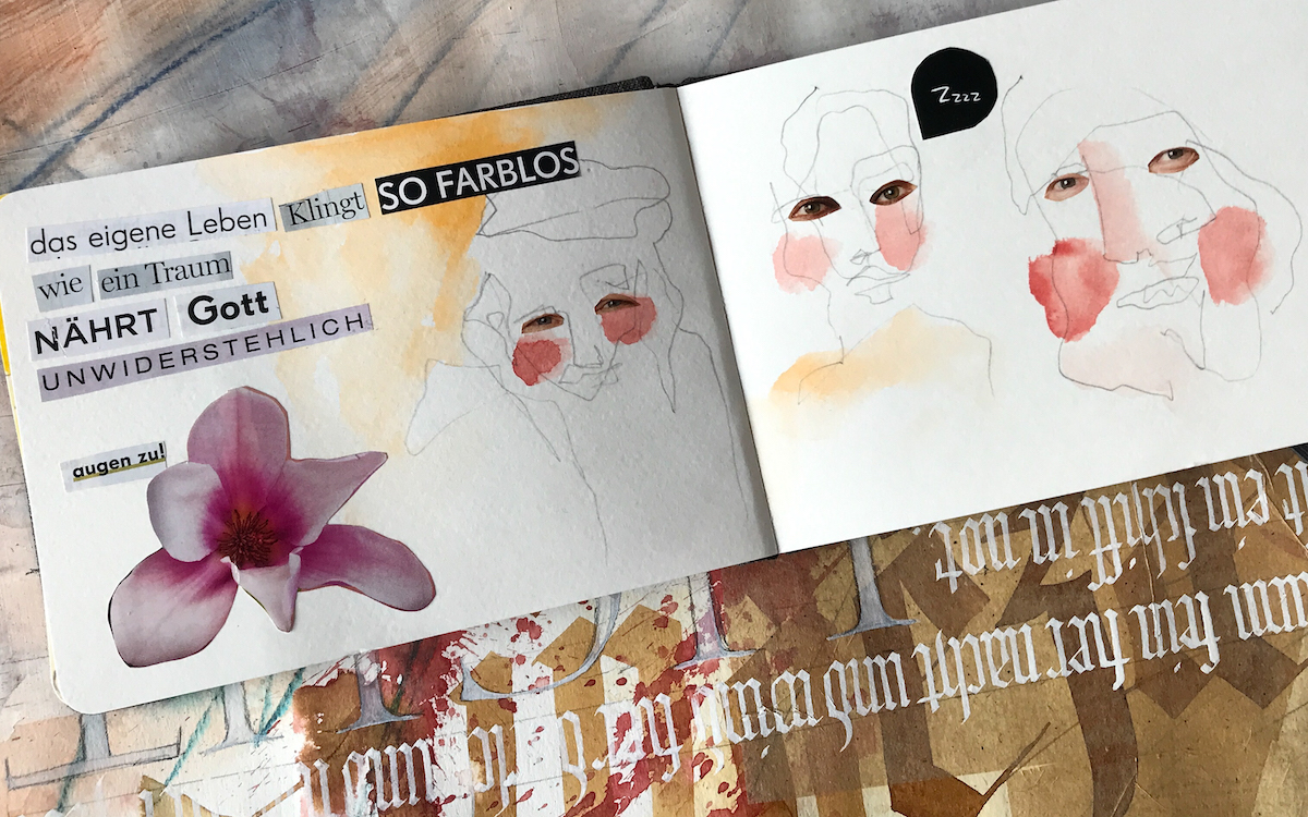 - was schön ist: Trompete üben, Ausschlafen, Schöfferhofer Grapefruit, Gartenschätze, Post bekommen und Post verschicken, Urlaubs-Messages von der Freundin aus Schweden und der Tochter aus Norwegen, die Onlinekurse, die ich gebucht habe (Bone Script, Ben Shahn Lettering, Hand Drawn Typographic Portraits, Ultimate Lettering Masterclass), mein August Art Journal