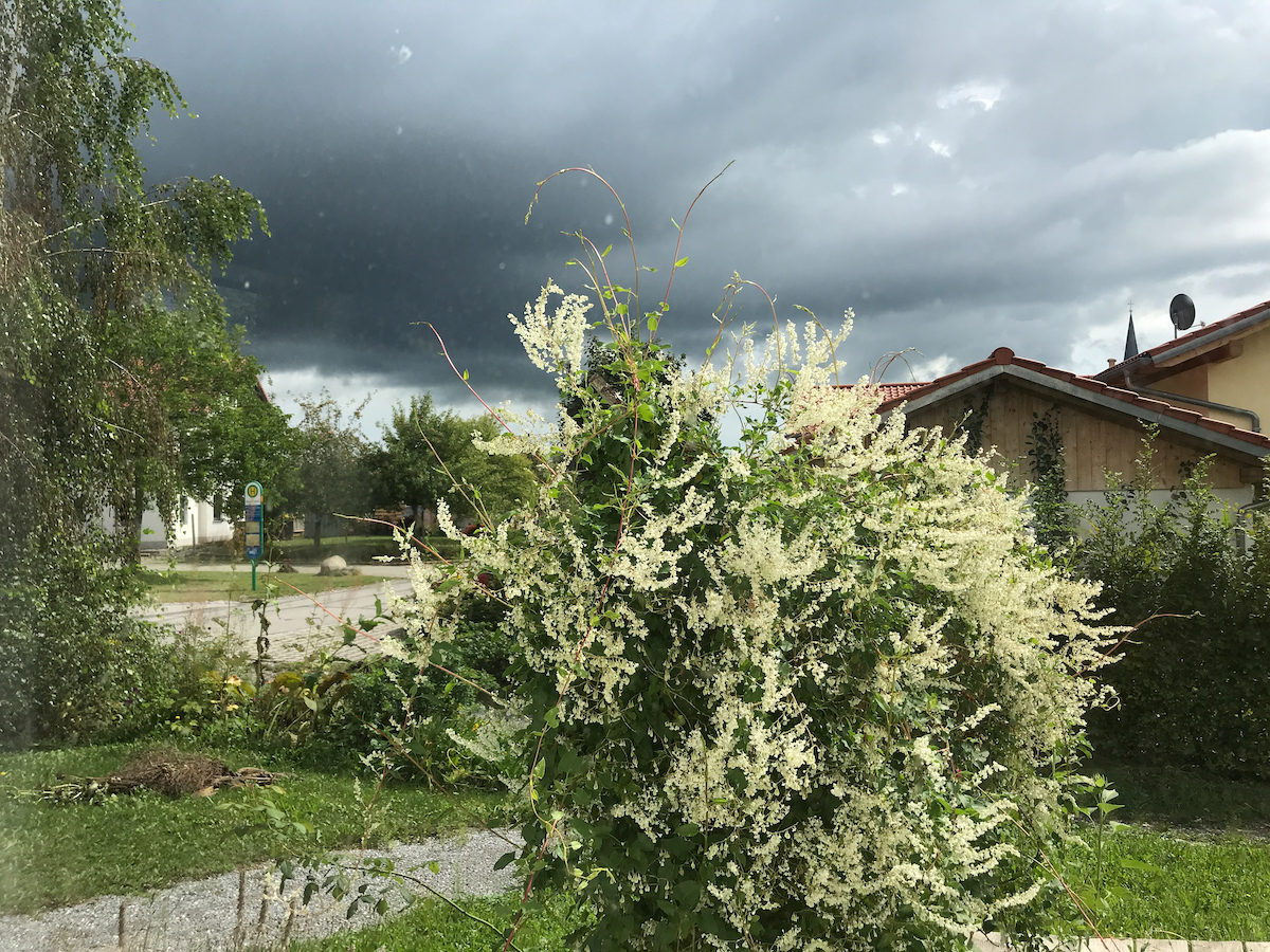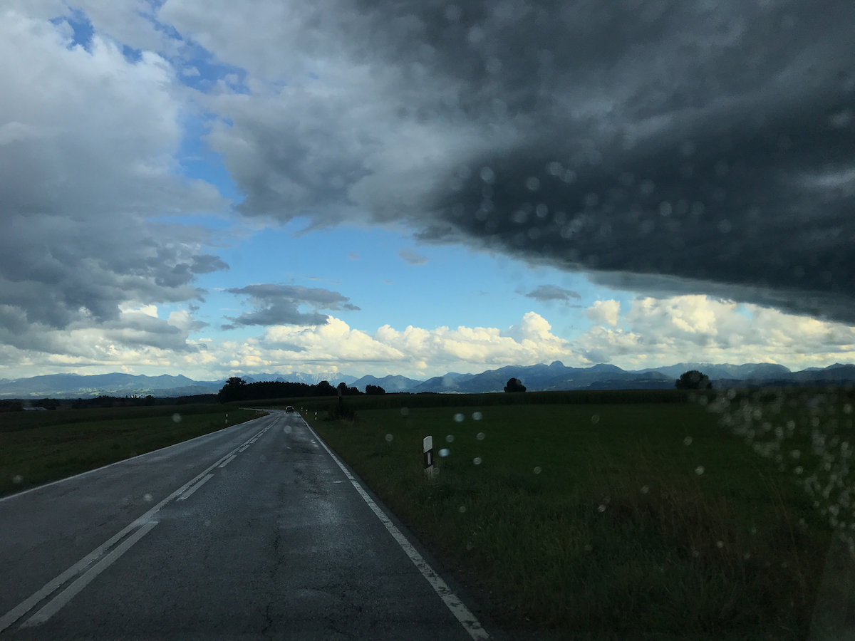 Einen einzigen Tag hatte ich mit dem Mann allein. Den haben wir genutzt, um am Abend essen zu gehen beim Guiseppe et Amici in Kolbermoor. Das hat uns beiden gut gefallen. Wir sassen da, haben geredet, einander genossen und gut gegessen. Auf dem Weg nach Kolbermoor sind wir durch dramatischen Himmel gefahren. Zusammen mit der Bergkulisse war das tausendmal schöner, als es jedes Foto durch die Autoscheibe.