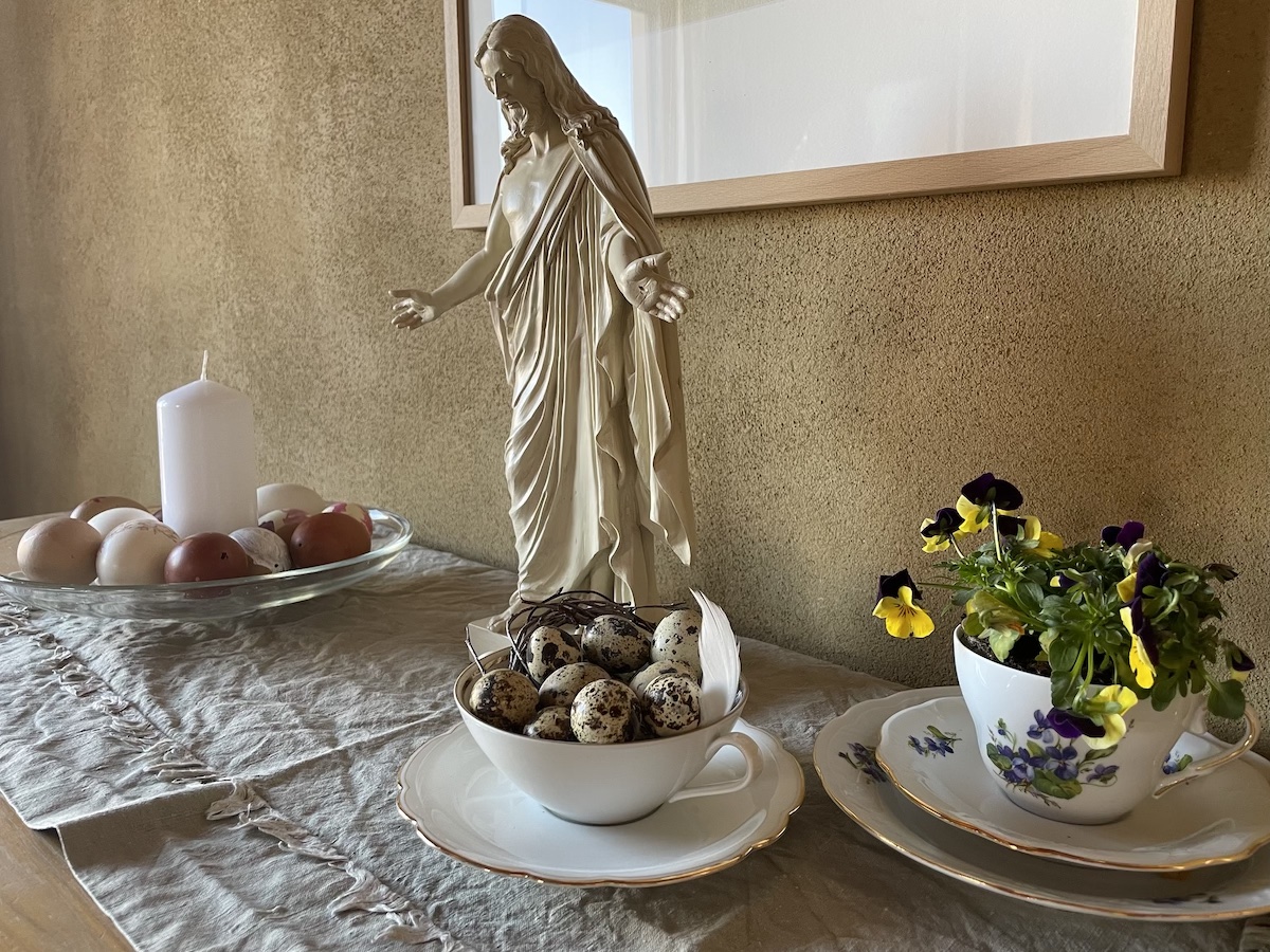 Hier hat das Leben zwischen Kursen und Ferien schon wieder Tempo aufgenommen. Ein paar Osterbilder möchte ich dennoch zeigen. Als Erinnerung für mich selbst. Unser Osterfest war klein, ruhig und familär. Das Wetter zeigte sich wider Erwarten noch sehr schön, wenn auch kalt. Der angesagte Regen blieb aus, so konnten wir im Garten Nester suchen.