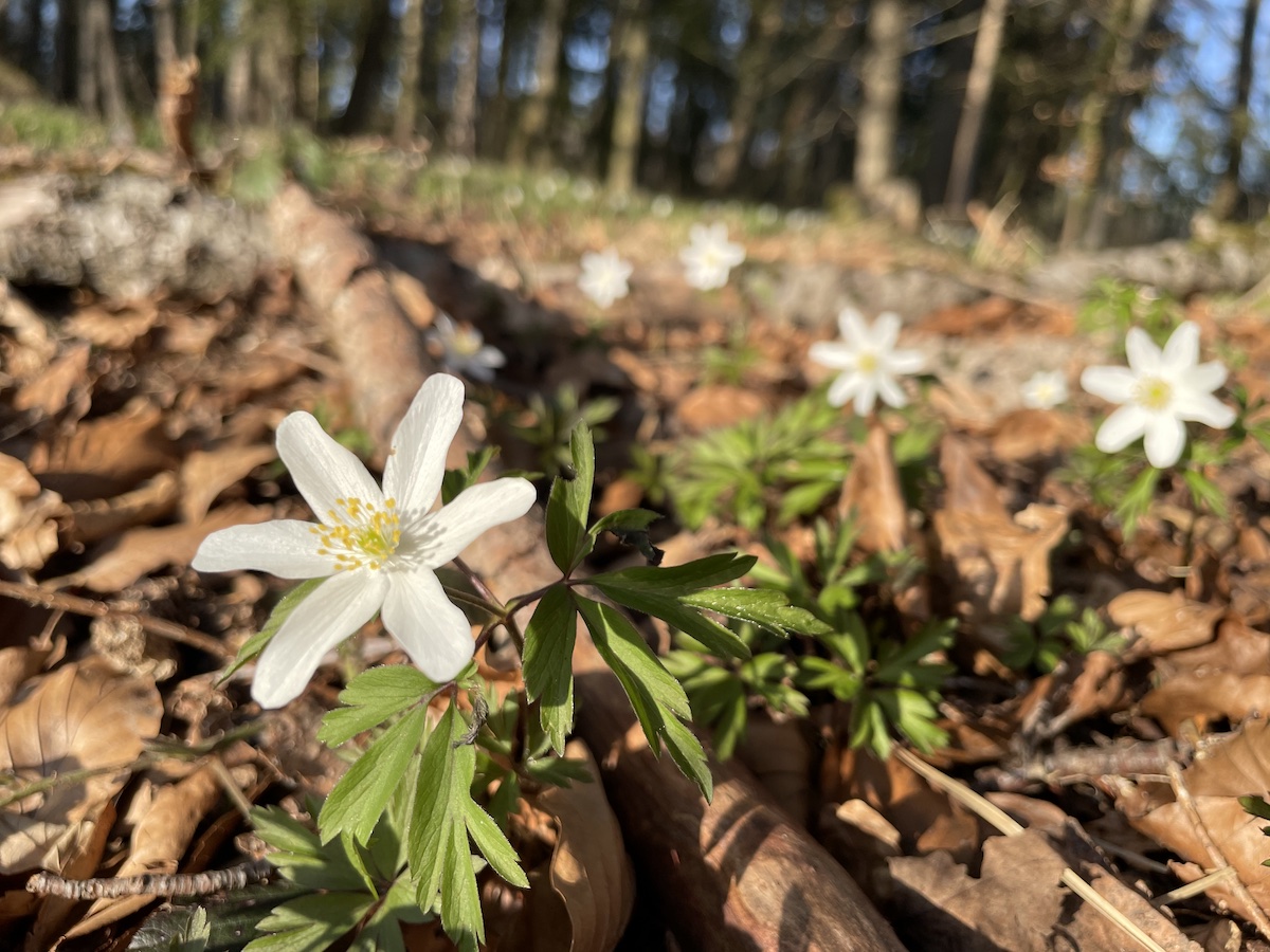 Waldspaziergang mit einer Freundin. Die Buschwindröschen blühen – Kindheitserinnerungsblüten.