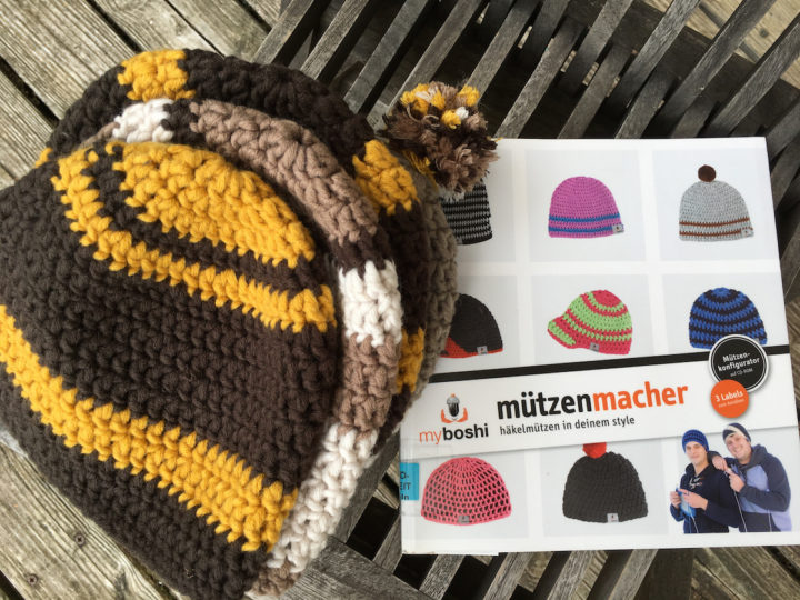 MyBoshi Wolle ist recht dick. Innerhalb von kurzer Zeit hat man eine Mütze gehäkelt. Darauf hatte ich Lust. Ich bestellte mir eine passende Häkelnadel, besorgte mir ein Anleitungsbuch aus der Bibliothek* und packte ein paar Knäuel in unser Urlaubsgepäck.