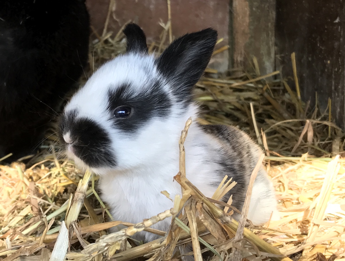 Kleine Häschen von vier Hasenmüttern beobachten.
