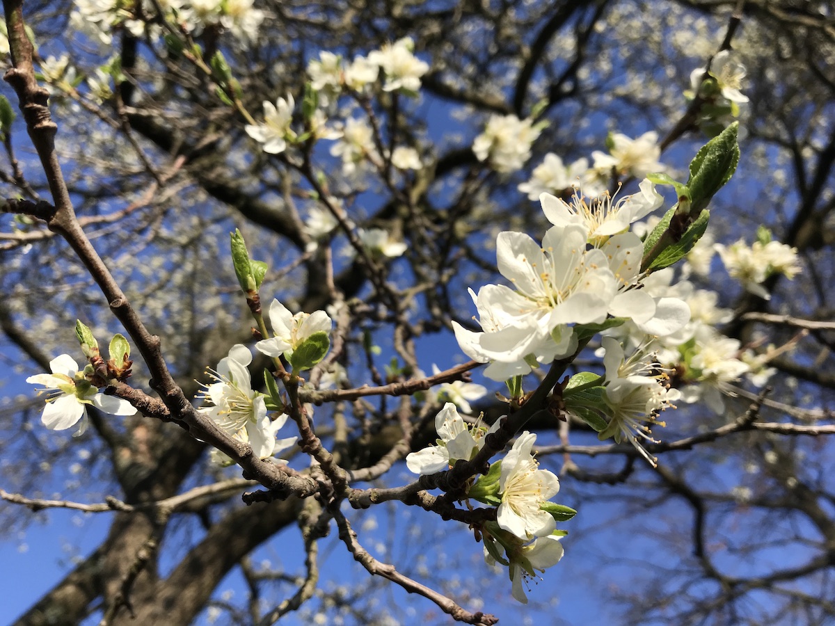 Den alten Pflaumenbaum in voller Blüte bewundern.