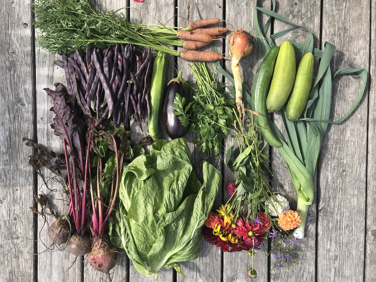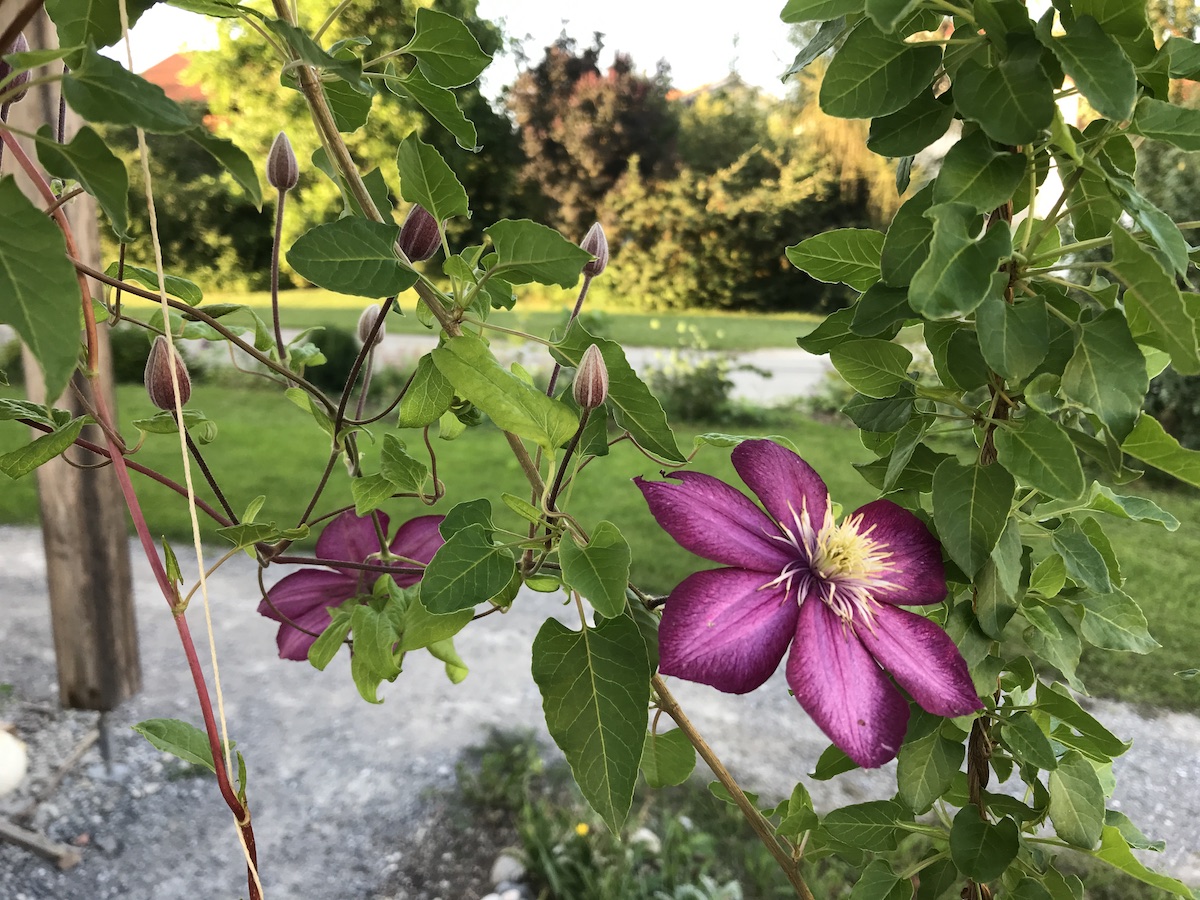 geschenktes Glück aus fremden Gärten, mit der Tochter Motorrad fahren (aufregend kribbelig, wenn sie sich in die Kurve legt und nicht dran denkt, dass da ihre alte Mutter hinter ihr sitzt – wah!), riesige reife Himbeeren, mein eigenes Bett, ein nachmittag Arbeitsflow mit Ergebnis, was mich freudig stimmt, Vorfreude auf den Kalligrafiekurs demnächst, die letzten Aufgaben des August Art Journal (und die ganzen tollen Rückmeldungen bisher), fertig gestrickte Socken, meine derzeitige Lektüre, Sommerpost im Briefkasten, meine blühende Clematis