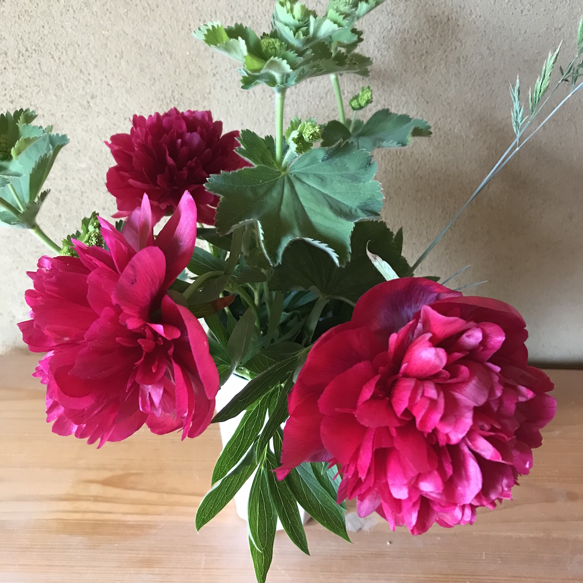 Gestern hatte ich Besuch aus dem Internet. Das war ein sehr netter Vormittag. Wir haben Gartengespräche geführt. Jetzt wachsen unter meiner hamburger Birke sächsische Dahlien in meinem bayrischen Garten. Ich mag das. Durch den Besuch habe ich gestern kaum etwas gearbeitet, aber dennoch viel Kleinkram erledigen können. Ich habe den Geburtstagstisch des Wolfes verräumt und mir ein paar Pfingsrosen aus dem Garten reingeholt. Der Wolf hatte letzte Woche Geburtstag. 10 Jahre ist er schon bei uns! Von seinem Geburtstagsgeld hat er sich ein lang ersehntes Hoverboard* bestellt und düst damit hier rum. Ich merke deutlich, wie sich seine Interessen verschieben. Am liebsten ist er draussen mit seinem Freund. Fussballspielen, Hoverboard oder Radl fahren. Er versinkt aber auch gern beim Minecarft spielen oder Hörspiele hören. Einmal in der Woche geht er zum Trompete spielen. Er spielt gern, übt aber nicht. Da ist es nun an uns, wieder bisschen mehr darauf zu achten. Er soll täglich mindestens 15 Minuten spielen, sonst kann er sich nicht weiter entwickeln. Darauf kann er sich einlassen. Für mich ist es eine kleine Herausforderung, in unserem Chaosalltag den Raum zu halten und so viel Struktur reinzubringen, dass das Üben nicht unter den Tisch fällt.