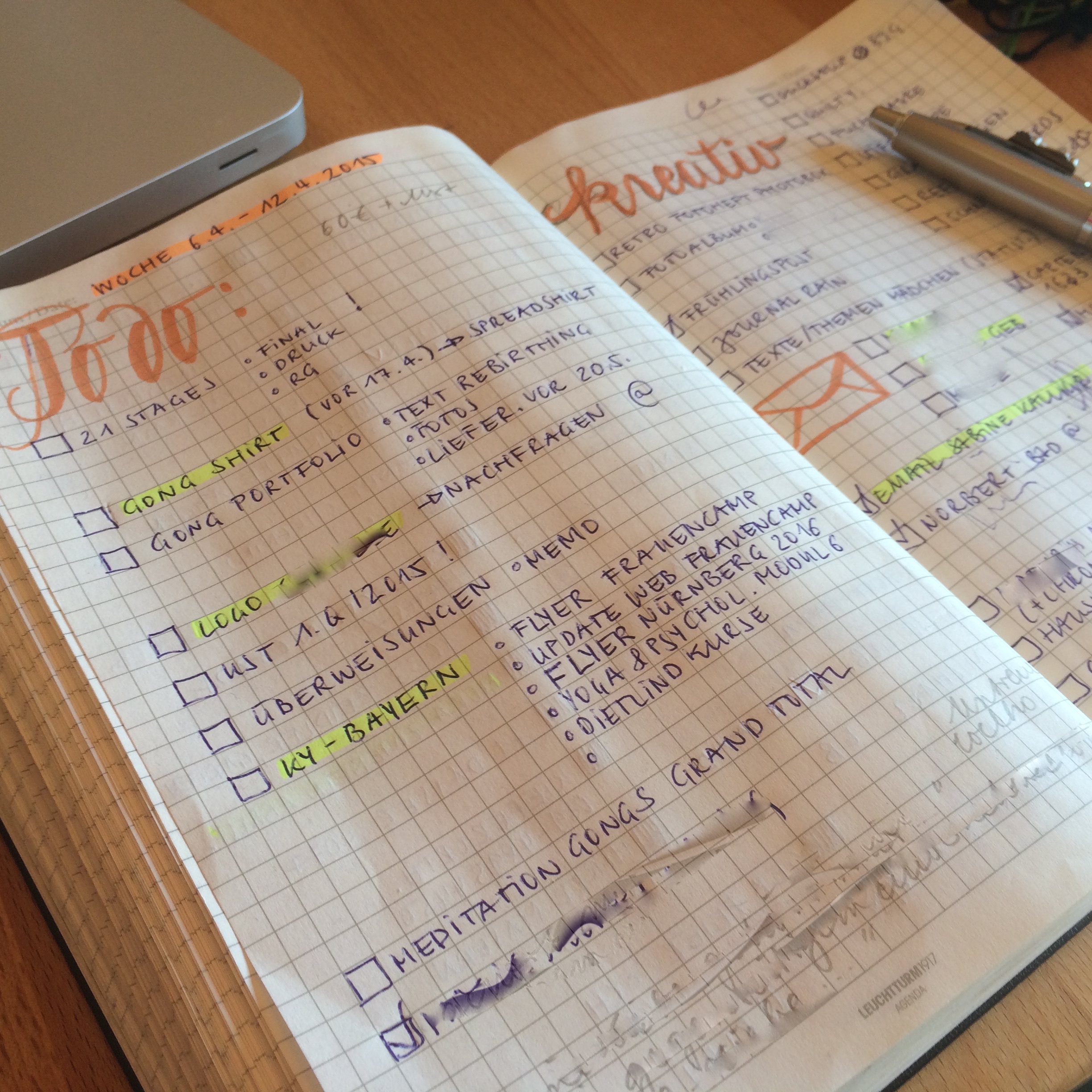 So schön übersichtlich gestaltet sind meine To-do-Listen nicht. Es beschränkt sich auf wöchentliche Zettel… das hat allerdings Nachteile bei längeren Planungen und Platz für zusätzliche Notizen gibt es auch nicht.