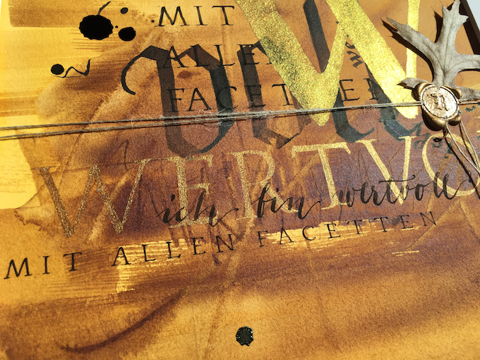 Das ist umwerfend schön. Danke auch, dass du uns am Entstehen hast teilnehmen lassen. Hast du mit Pinsel oder mit der Feder geschrieben?