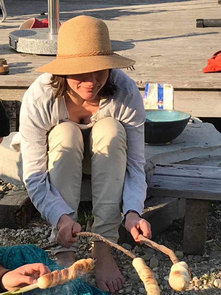 Am Abend möchte ich gern ein Osterfeuer haben. Die Tochter bereitet einen Stockbrot Teig aus unserem letzten halben Stück Hefe vor. So gibt es zum Abendessen Rohkostknabberein und Stockbrot.