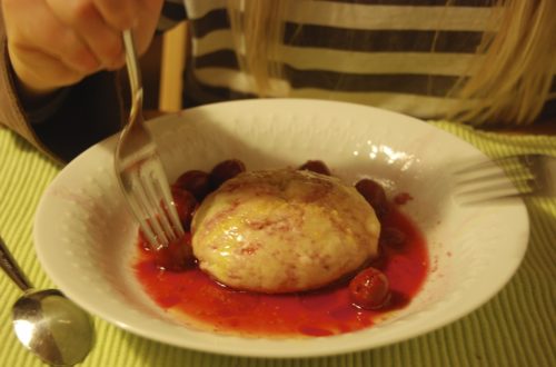 Bienenstich ist mir aus meiner Kindheit, aus DDR-Zeiten, als ein Kuchen mit einer Schicht klebriger Kokosflocken in Erinnerung (sah etwas so aus). Es hat mich dann doch etwas überrascht, dass Bienenstich hier etwas ganz anderes ist. Den Kuchen backt die Oma (die Mutter des Mannes), wenn wir zu Besuch kommen. Die Kinder lieben ihn und haben das Rezept von Oma eingefordert. Nun backen sie ihn schon seit zwei Wochen immer wieder, um ein Gefühl dafür zu bekommen (und natürlich, um Kuchen zu essen). Mittlerweile kann ihn der Wolf schon ohne Hilfe selber backen. Und weil einige nach dem Rezept gefragt haben, voilà: Schneller Bienenstich Für den Teig 4 Eier (Gr.…
