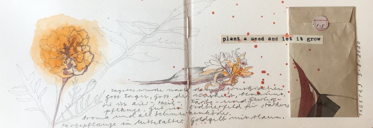 Kostbar empfinde ich auch die tägliche Arbeit an meinem August Art Journal und das wunderbare Feedback der teilnehmenden Frauen. In der Gruppe auf Facebook gibt es jeden Tag neue Arbeiten zu sehen, viel Freude, Austausch und Aha-Momente, wie zum Beispiel von Nici. Das macht mich so glücklich! Mein Motto für das August Art Journal ist: