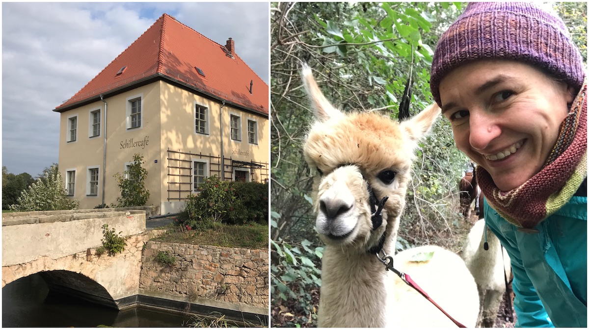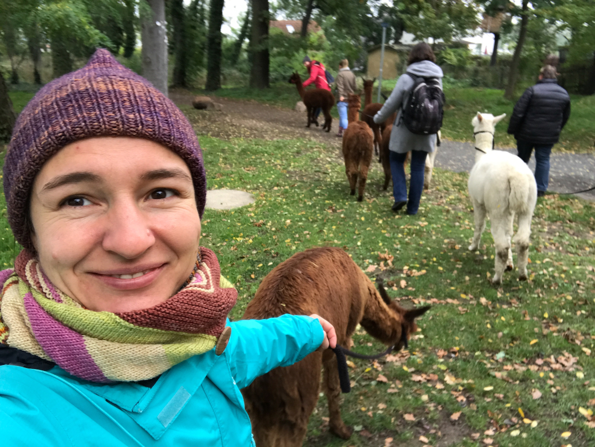 Aber unser Programm war noch nicht zu Ende. In Kahnsdorf hatten wir eine Alpaka-Tour gebucht. Eine Stunde lang führten wir die flauschigen Andentiere durch den Park, der an das Herrenhaus grenzte. Alpakas sind nicht nur Wolltiere, sondern werden auch zu Therapiezwecken eingesetzt. Kann ich mir gut vorstellen. Anfangs war ich etwas skeptisch zu dieser Idee, fand unseren Spaziergang dann aber so schön!