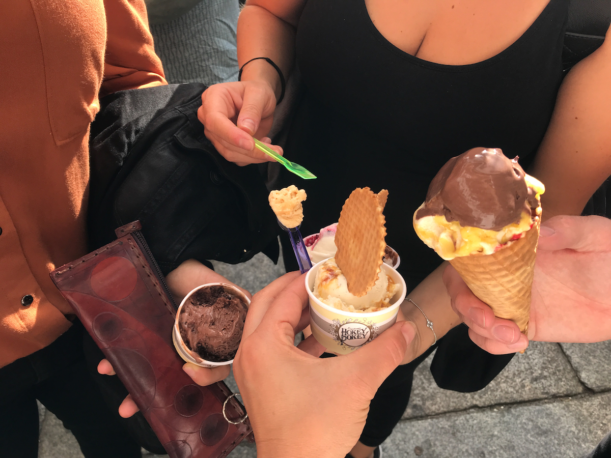 Zum Nachtisch gab es köstliches Eis im Hokey Pokey und einen gemütlichen Spaziergang zur Bahn zurück in unser Basislager. Dort verbrachten wir einen geselligen Spieleabend mit interessanten Gesprächen, viel Lachen und einem kleinen Abendessen. Was ein Tag. Insgesamt über 11 km waren wir zu Fuss unterwegs (sagt meine App).