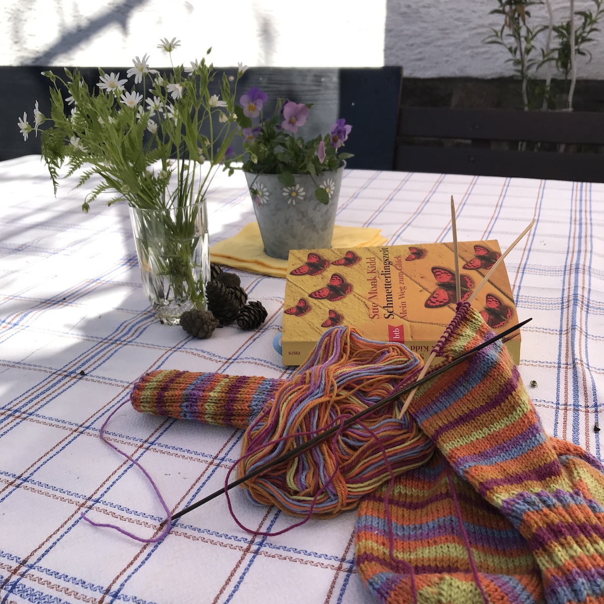 Im Gepäck habe ich auch Erinnerungen an viele schöne Momente. Familienzeit zu Ostern, Spaziergänge im Wald, Treffen mit Freundinnen, gemeinsames lachen, tiefe Gespräche, gegenseitige Inspiration, ein Picknick und eine Radtour, gemütliches Gartensitzen und Yoga und eine Gongmeditation mit und bei dem Mann. Ich hatte viel Zeit zum Stricken, Zeichnen und Lesen, habe den ersten Spargel gegessen und jeden Tag frischen grünen Salat (mit Zitronensaft und Zucker, kennst du das?) aus dem Garten meiner Eltern.