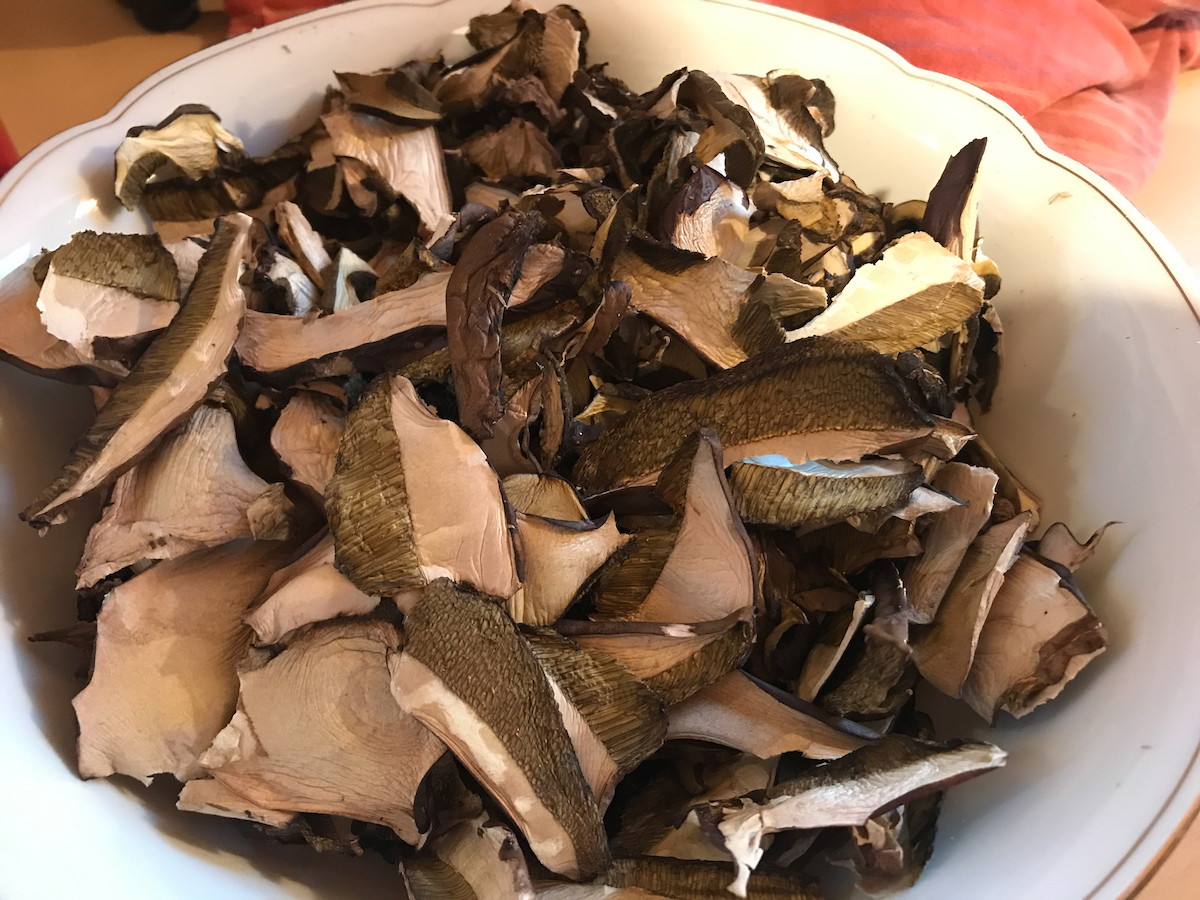 Zuhause habe ich die Pilze geputzt und getrocknet. Die verwenden wir in Sossen und Risotto. Die frischen Steinpilze und festen Maronen haben wir frisch zu Pasta und Risotto gegessen. Es hab also viele Pilzgerichte in den letzten Tagen.