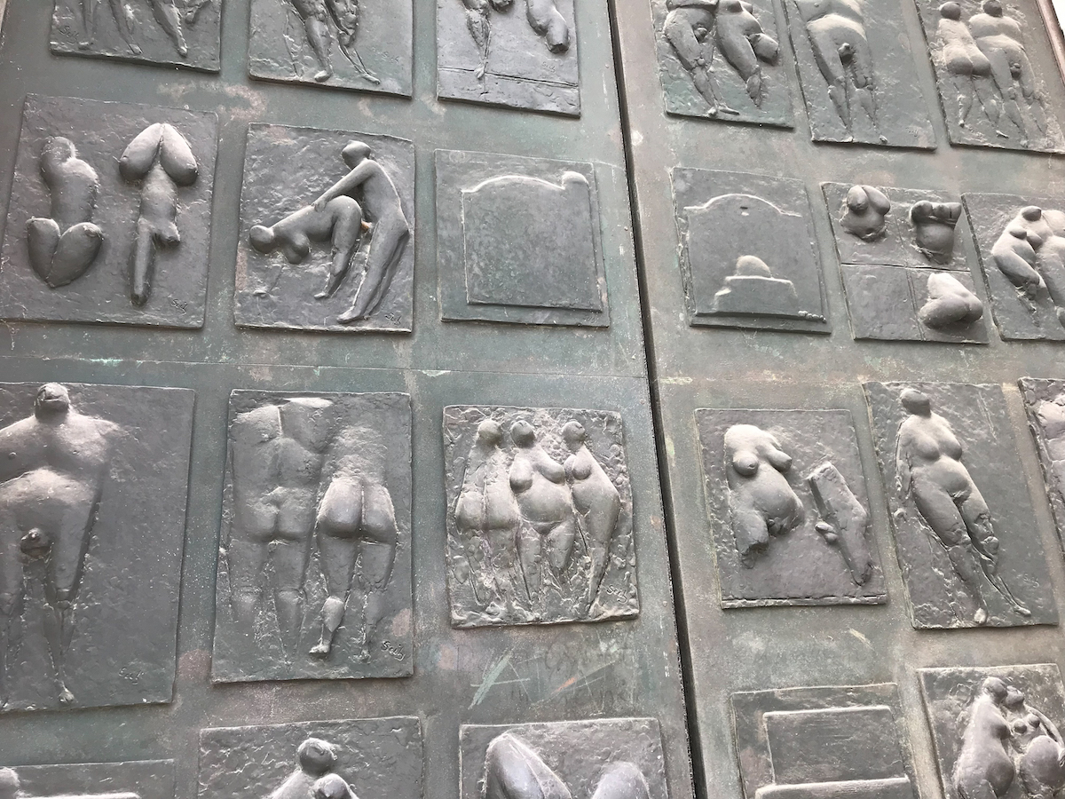 Dann schlenderte ich zum Museum für Kunst und Gewerbe, wo ich mir die Ausstellungen anschaute. Dabei entdeckte ich die verrückte Tür am Gebäude des Museums. Meine Skizzen und Gedanken zu den Ausstellungen hab ich auf Kallimagie gezeigt. Die Zeit verging wie im Fluge. Jedoch war ich tatsächlich ein bisschen müde und später auch erschöpft vom vielen Rumlaufen. Gegen Mittag fuhr ich dann weiter mit diversen Regionalbahnen Richtung Stralsund. Ich hatte mir diesmal 1.Klasse gebucht, weil ich es gern komfortabel haben wollte, wenn ich schon so lange unterwegs sein würde. Der Preisunterschied zum 2.Klasse Ticket war ungefähr 10 Euro. Ich war neugierig, vorfreudig und entspannt. Die meiste Zeit während der Fahrt tat ich nichts, obwohl ich mir Strickzeug, ein Buch und Schreibsachen mitgenommen hatte. Es war gut, einfach mal nur zu sitzen und den Gedanken nachzuhängen.