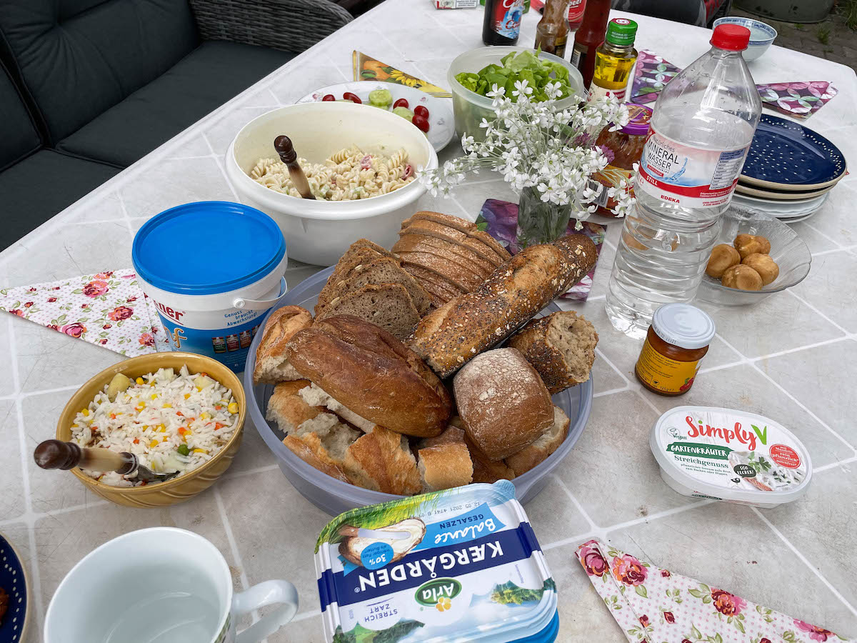Am Sonntag mussten wir dann schon wieder zurückfahren, denn unsere Ferien sind nun zu Ende. Der Abschied ist immer etwas schwieirg. Die Kinder wären am liebsten noch länger geblieben. Aber wir haben schon das nächste Date im Sommer verabredet. Juhu! Die Tochter hat uns dann am Abend vom Bahnhof abgeholt, weil der Mann noch bis Montag arbeiten war. Ganz hungrig haben wir uns eine kleine Sause beim Griechen im Ort bestellt. Als krönender Abschluss der Reise.