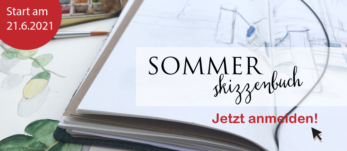 P.S.: Wenn du Lust hast, dir selbst mitten im Alltag eine kleine Auszeit zu gönnen, empfehle ich dir den Sommerskizzenbuch-Kurs. In kleinen Häppchen erkläre ich dir, direkt zum Mitmachen, worauf es beim Zeichnen im Skizzenbuch ankommt und wie am Ende ein schönes Erinnerungsstück entsteht.