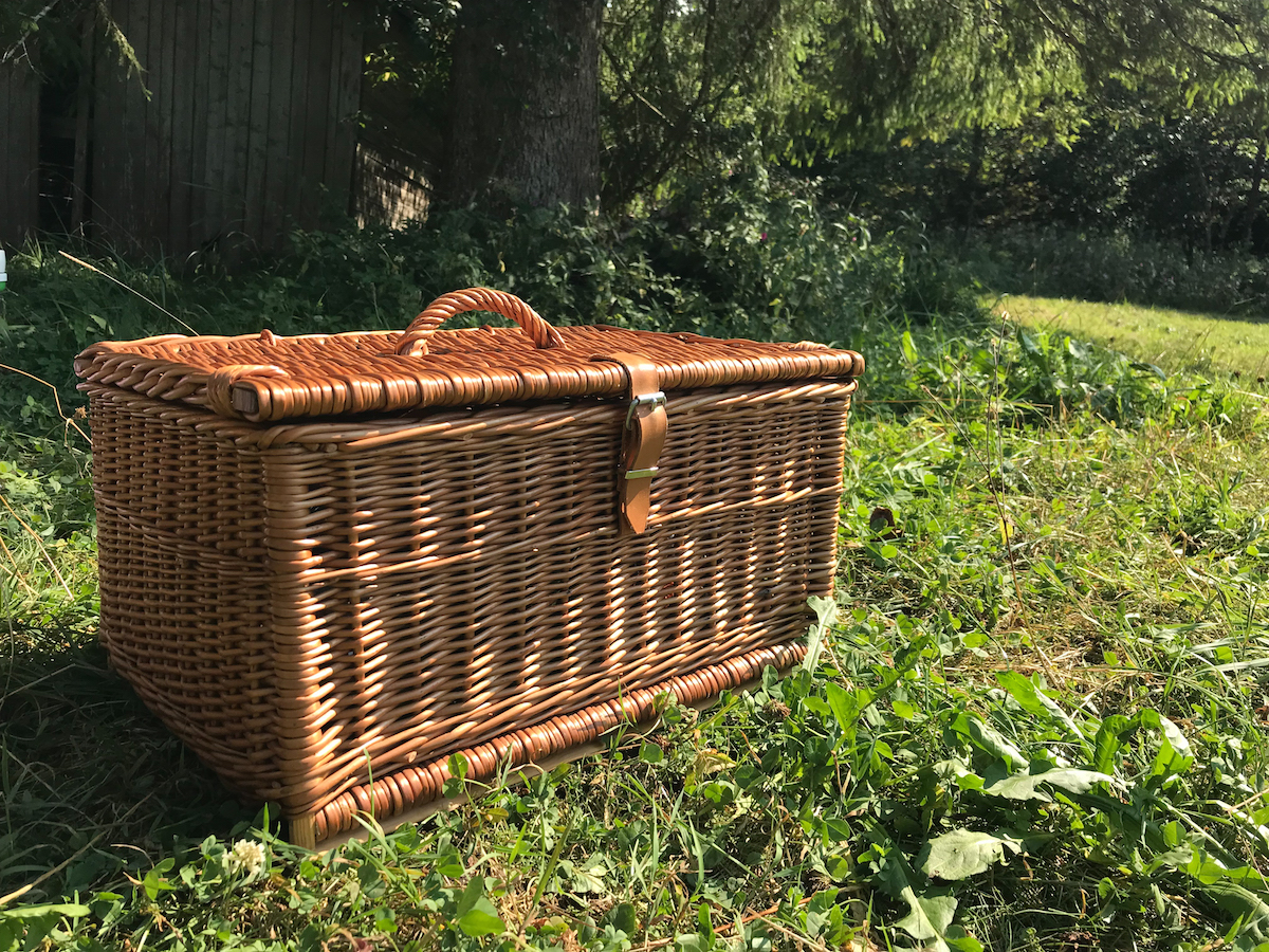 Wir fanden ein schattiges Plätzchen, breiteten unsere Decken aus und genossen ein Picknick aus unserem tollen Picknickkorb. Der Korb ist schon viele Jahre unser Begleiter. Den haben wir uns zum Abschied aus Freiburg von der Korbmacherei anfertigen lassen.