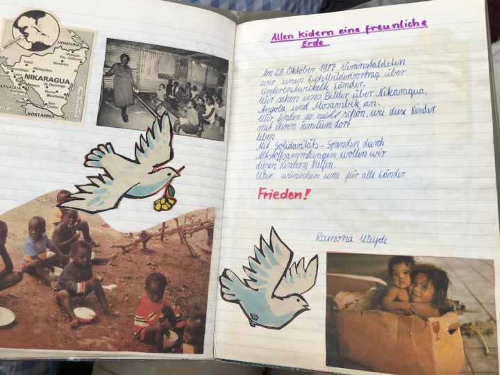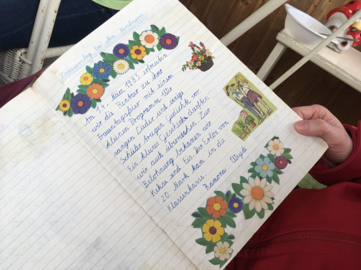 Am Samstag hatte ich ein Treffen mit meinen ältesten Freundinnen. Wir kennen uns schon seit dem Kindergarten und sind zusammen zur Schule gegangen. Wir sind eine Truppe von 6 Weibern und treffen uns 1-2 mal im Jahr. Da ich so weit weg wohne und es nicht zu allen Treffen schaffe, habe ich einige von ihnen schon mindestens 5 Jahre nicht mehr gesehen. Wir verbrachten einen schönen Nachmittag im Garten bei reich gedecktem Tisch. Einige von uns hatten Relikte aus unserer Schulzeit dabei: unser Gruppenbuch aus der Grundschulzeit, handgeschriebene heimlich im Unterricht weitergereichte Zettelchen und geschriebene Geschichten. Interessante und sehr lustig zu lesende Zeugnisse unserer Teenagerschwärmerein und Einsichten in das, was uns damals beschäftigte und wichtig war. Oh, dieses Sozialleben, diese Weiberstreiterein und Grüppchenbildungen. Was haben wir gelacht! Der Nachmittag verging viel zu schnell.