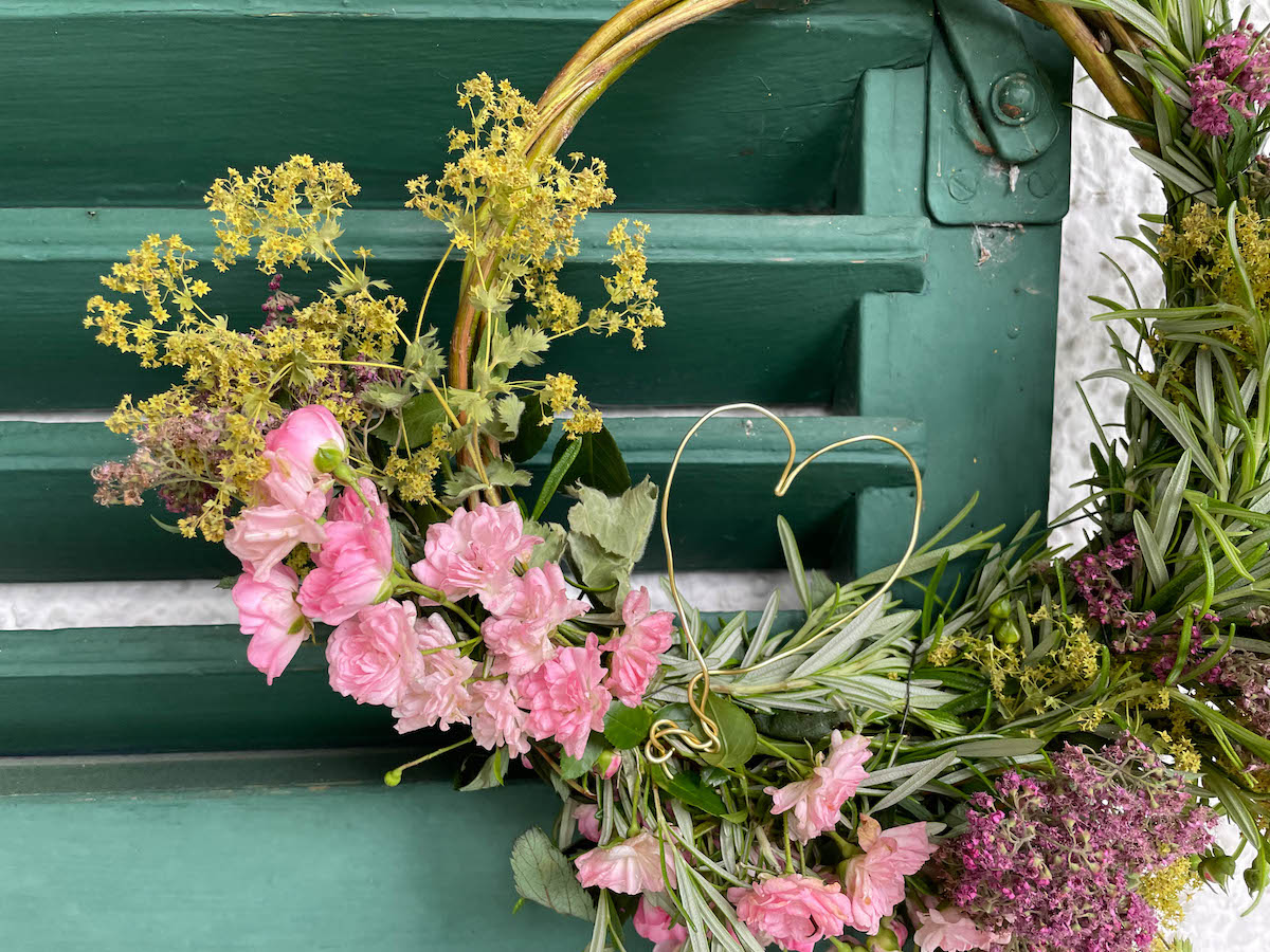 Am Nachmittag habe ich mich mit einer der Frauen an den Bodensee zurückgezogen zum Reden und auf’s Wasser schauen. Dafür keinen Liegestuhl gebaut und keine Kränze gebunden. Das war genau richtig so. Ich hab es sehr genossen. Zurück im Garten des Seminarhauses, war ich dann doch inspiriert, hier und da ein bisschen zu werkeln.