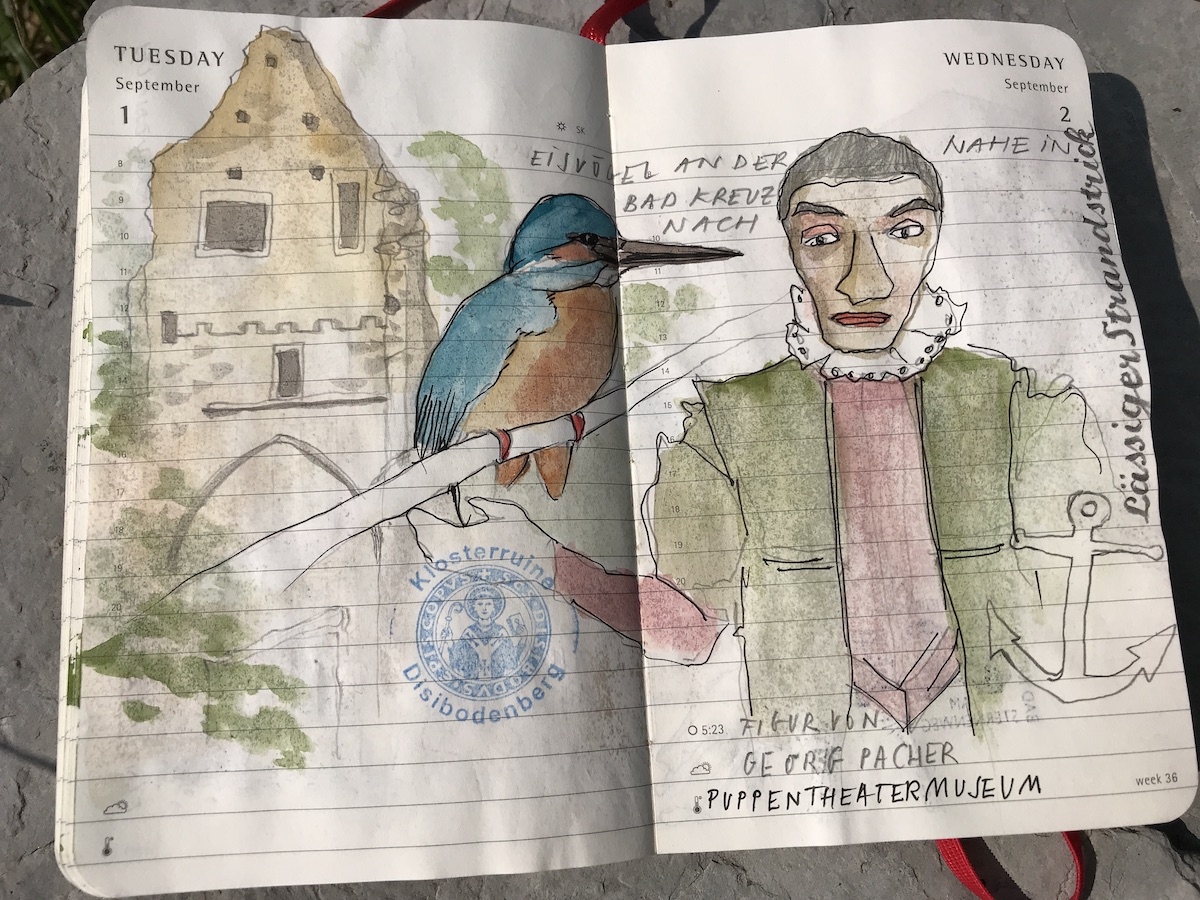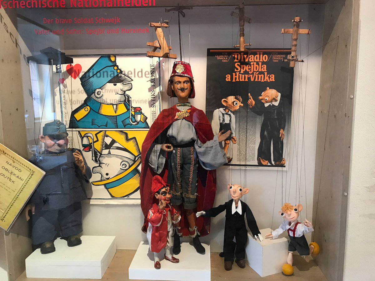 Ich freute mich auf Zeit mit mir selbst, die ich richtig ausgiebig genossen habe. Ein Künstlertreff sozusagen. Voller Neugier, Spiel und aufmerksamen Umhergestreife. Zuerst schlenderte ich zum Museum für Puppentheaterkultur. Dort hatte ich das ganze Museum für mich und konnte es in aller Ruhe entdecken. Das hat mir richtig gut gefallen. Interessante Puppentheater, Geschichte und Geschichten, Puppenbildhauerkunst, ausdrucksstarke Gesichter und Kostüme und viele Möglichkeiten zu entdecken, mitzumachen und zu staunen. Ich habe Marionetten selbst geführt, Schubladen aufgezogen und hinter Kulissen geschaut und mir sind alte Bekannte meiner Kindheit wieder begegnet (Hurvinek und Speibl).