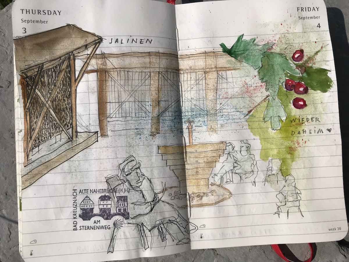 Den letzten Tag, unseren Abreisetag, wollten wir noch zusammen geniessen. Der Mann und ich flanierten noch einmal gemeinsam durch die Stadt. Ich holte mir beim Kurzentrum einen Pilgerstempel und genoss noch einmal den Blick auf die süßen Häuschen am Ellerbach, die auch klein Venedig genannt werden. Eine ganze Weile sassen wir an der Saline im Kurpark und liessen die letzten Tage noch einmal Revue passieren. Zum Mittag besuchten wie wieder den Italiener, der uns neulich schon so gut gefallen hat. Diesmal aßen wir von der Mittagskarte, die Speisen waren eben so gut. Leider war es dann schon bald Zeit, aufzubrechen. Wir verabschiedeten uns von einander und von Maren. Der Mann fuhr direkt nach Hause, ich mit der Bahn zu meinen Eltern, wo ich die Kinder noch einsammeln wollte.