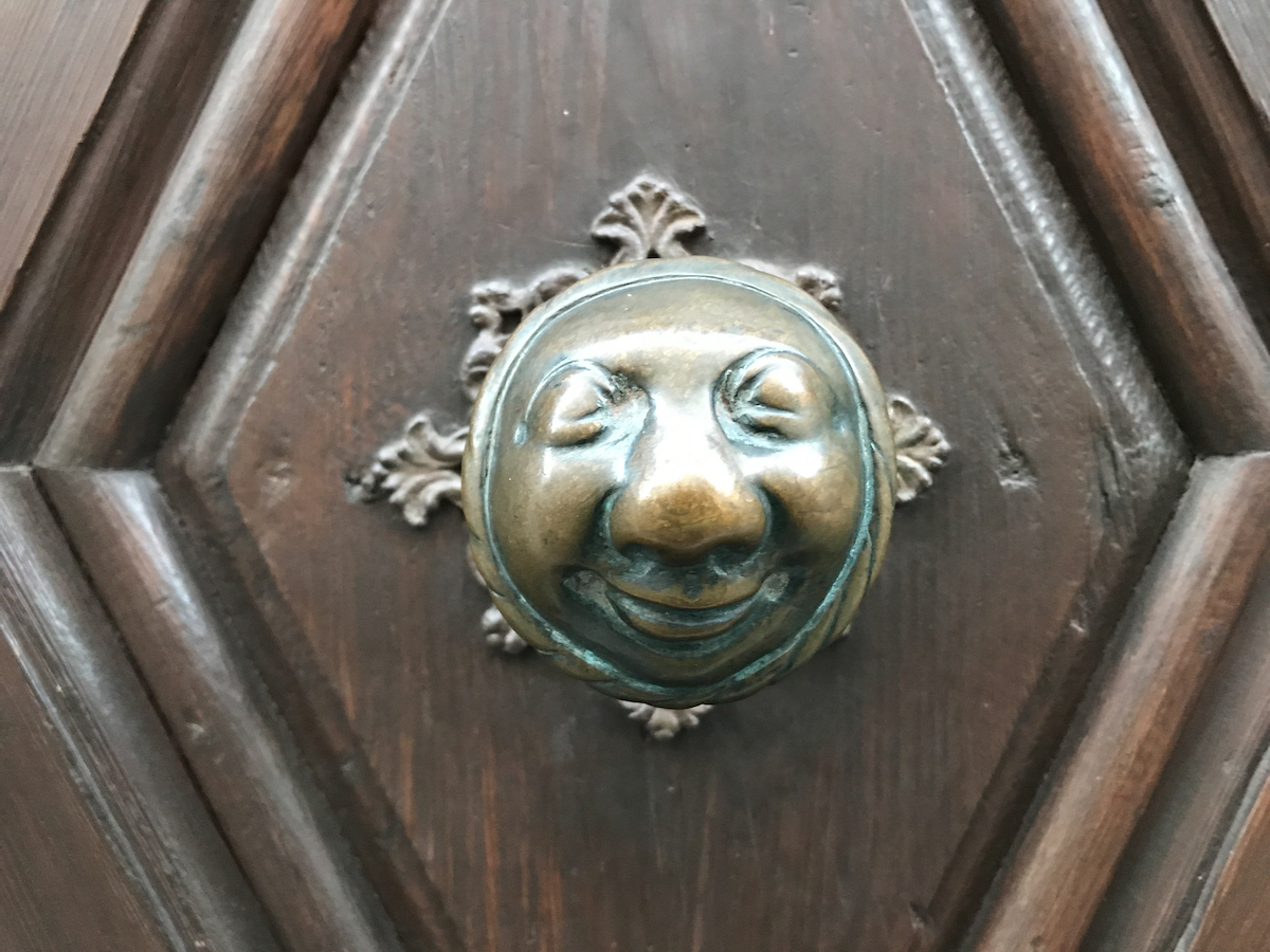 Zum Beispiel das allseits präsente Bamberger Apfelweibla. Ganz klar, dass wir den finden wollten. Und siehe, er war ganz nah bei unserer Unterkunft. Dieser Türknauf kommt in einer Erzählung “Der goldene Topf” von E.T.A. Hoffmann vor.