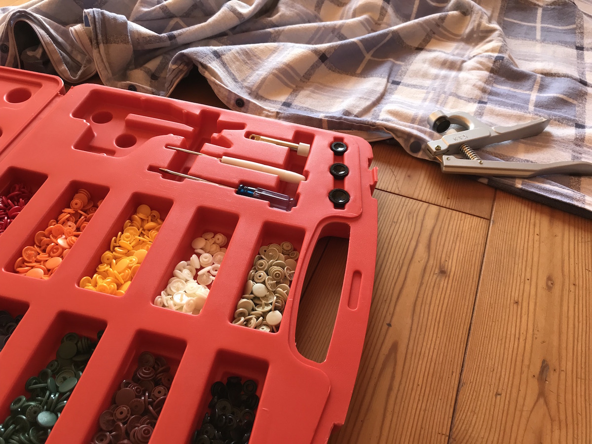 Ich habe mich sogar dem Flickkorb angenommen und die darin wartenden Puppen und Bettwäsche repariert. Beim Bettbezug war der Reißverschluß kaputt. Ich habe einfach Druckknöpfe drangemacht.