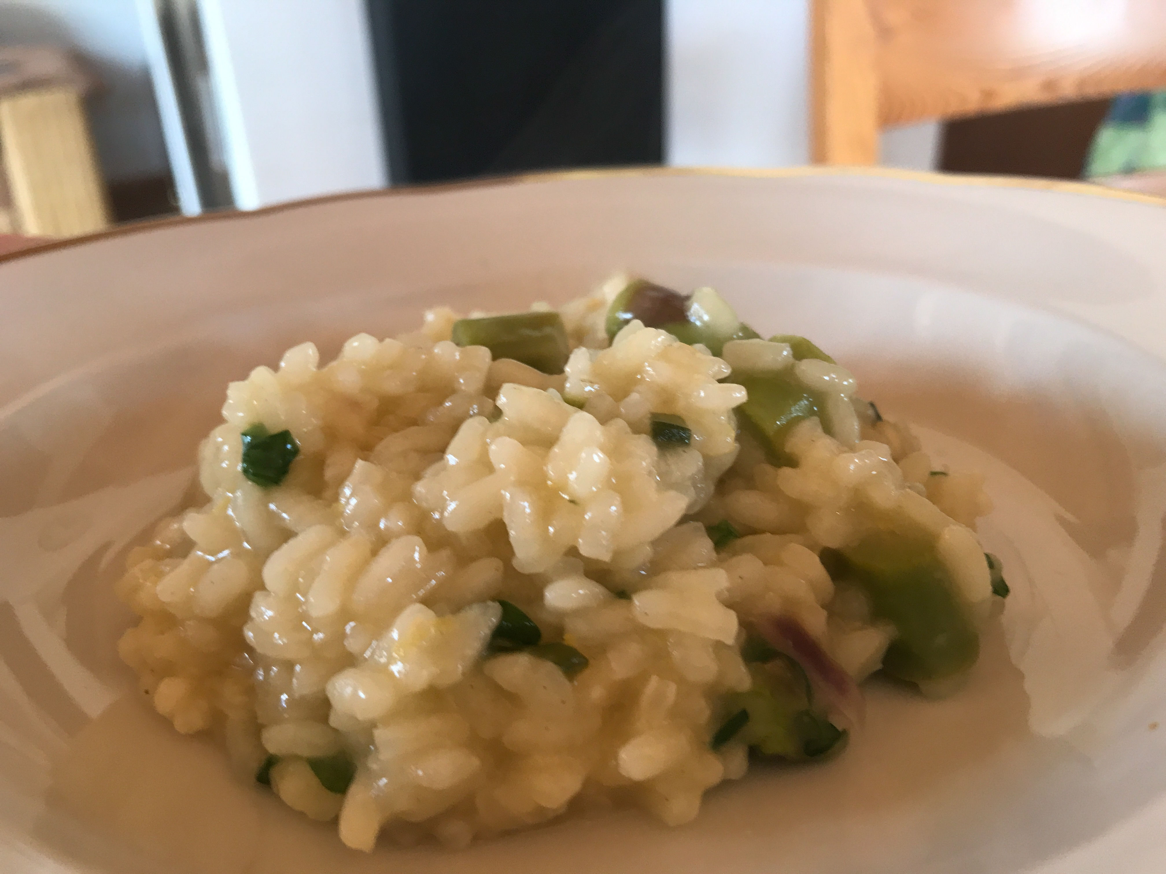 In der Gemüsekiste am Freitag war frischer grüner Spargel drin. Darauf habe ich mich schon die ganze Zeit gefreut. Der erste Spargel der Saison. Wir haben ihn als Spargelrisotto mit Bärlauch (aus dem Garten) gegessen. Das war sehr lecker. Das Rezept war in einer der Zeitschriften, die dem Paket von meinen Eltern begelegt waren. Hm. Für die Kinder gab es Pommes. Die mögen Spargel nicht so gern.