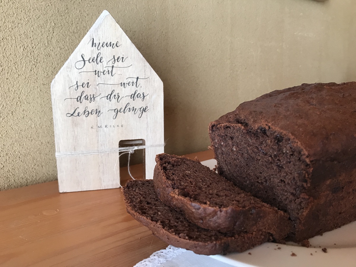 Auf dem Weg zum Einkaufen fiel mir ein, dass ich bei meinem Kuchen den Zucker vergessen hatte. Am Ende ist das aber gar nicht schlimm, denn die Süße der Bananen war ausreichend. Der Kuchen schmeckt mir trotzdem. Und ich bin eh die einzige, die ihn isst. Die Jungs mögen keine Bananen.