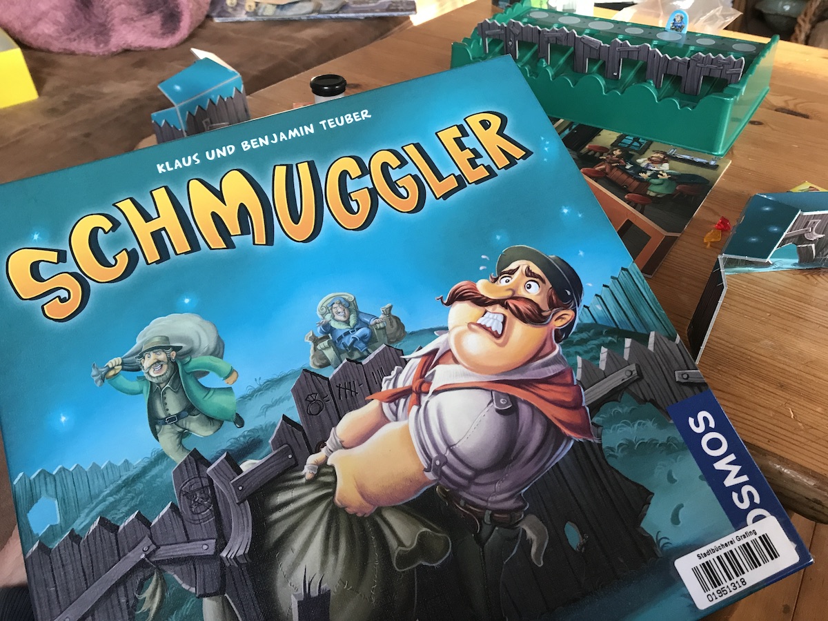Nach dem Abendessen spielen wir noch eine Runde “Schmuggler”, eines der Spiele, die sich die Jungs aus der Bibliothek ausgeliehen haben. Das macht uns Spass. Aus intelligenter Knete, die dem Spiel beiliegt, rollt man Kugeln in denen man einen Edelstein versteckt. Diese Kugeln müssen aber so groß bzw kleine sein, dass sie durch ein Tor einer Rollbahn passen.