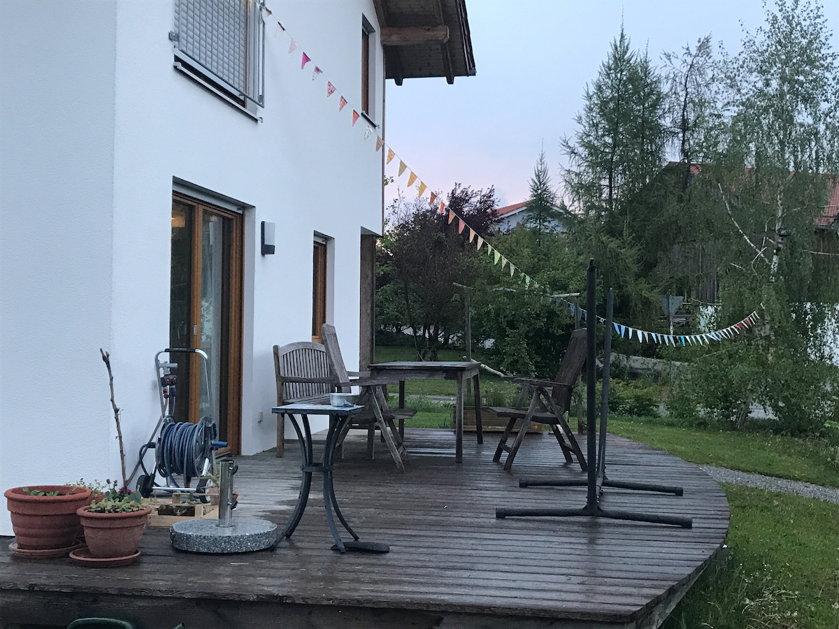 Nebenbei konnte ich viel Kleinkram erledigen. Emails, Gespräche mit lieben Menschen an der Haustür und am Telefon. Ich war Spazieren, allein und mit dem Mann, habe am Sonntag mit dem Mann das erste Modul für den Schriftenteppiche-Kurs gefilmt und mit dem Sterngucker das Zimmer aufgeräumt. Wir haben Film geschaut (“Hilfe, ich habe die Lehrerin geschrumpft”) und unseren vom Baum heruntergefallenen Meisennistkasten wieder aufgehangen. Die Tochter hat ihr Hochbeet mit Erde befüllt, und ich beginne, mich über die Schnecken im Garten zu ärgern. Mistviecher.