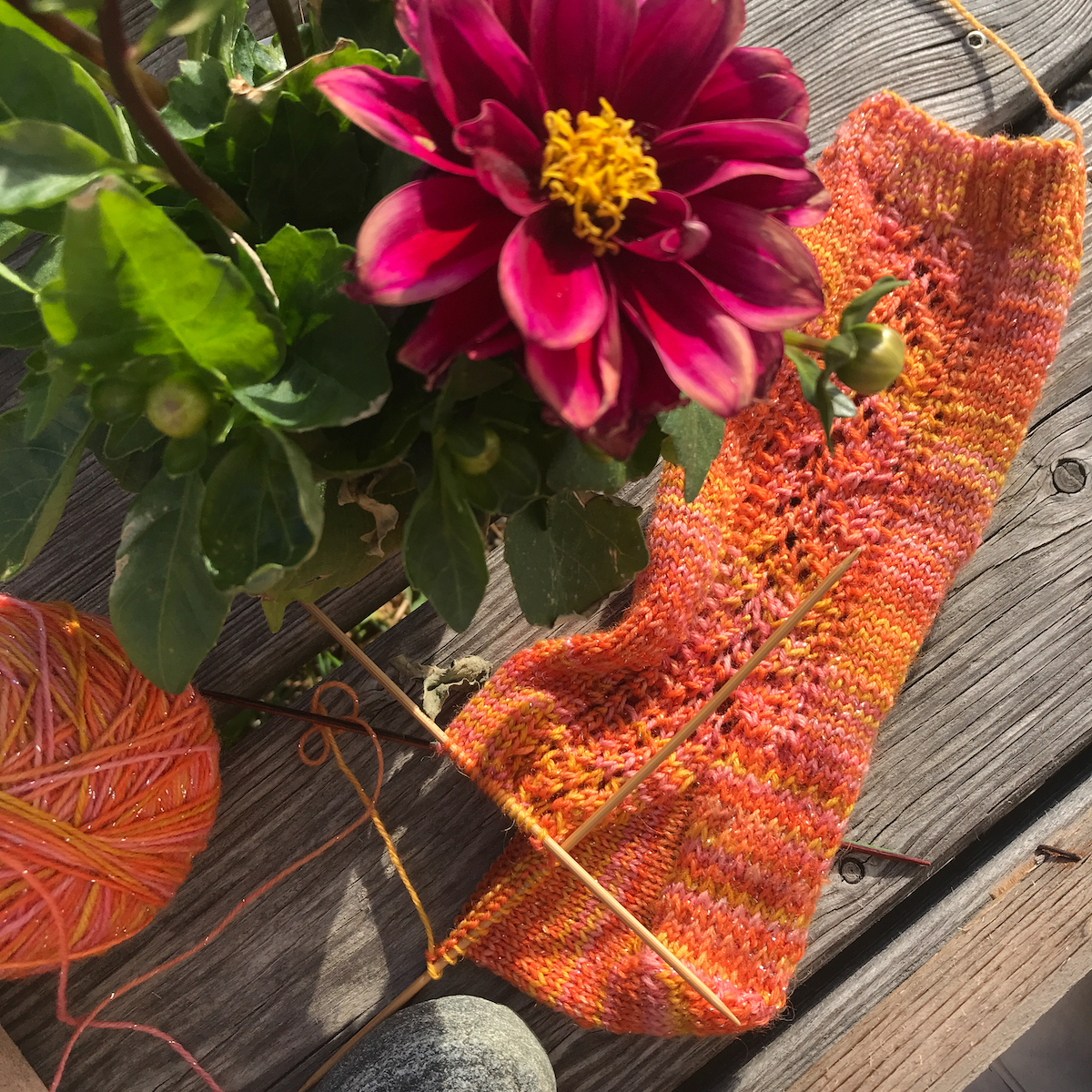 Der Regen und das Drinnensein hat auch wieder bisschen Strickzeit mitgebracht. Ich habe an meinen Glitzersocken weitergestrickt, die mir viel zu langsam wachsen. Aber ich mag sie schon sehr. Es strengt mich allerdings an, dass ich immer auf die Anleitung schauen muss, um das Muster nicht zu verlieren.