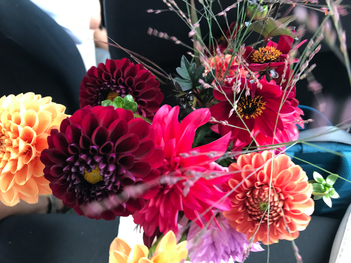 Am Samstag nachmittag hatte der Sterngucker die Idee, seine Schwester zu besuchen. Weil wir kein Auto hatten, war sie so nett uns abzuholen. So knuddelten die Katze, freuten sich über Nutella-Toast und den Garten. Für ein Stündchen stahl ich mich mit dem Wolf davon, um Einkäufe zu erledigen und ein Eis zu essen. Ich besorgte noch ein paar Kleinigkeiten als Goodies zum Schulstart. Dann genoss ich noch einen Gartenrundgang und durfte mir einen Strauss Dahlien aussuchen. Die Tochter brachte uns wieder nach Hause. Auf dem Rückweg kauften sich die Jungs Chips und Schlabberkram von ihrem Taschengeld.