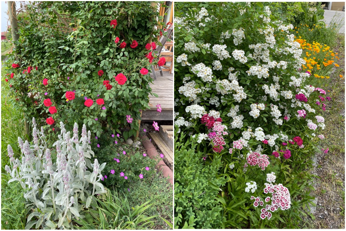 Sonntagmorgen. Der Mann ist zum Gongseminar gefahren, die Kinder kuscheln in ihren Betten und zocken zusammen. Ich sitze in Ruhe am Frühstückstisch und geniesse den kühlen Morgen. In der Waschmaschine dreht schon eine Ladung Wäsche ihre Runde. Ich war im Garten und habe mir einen Strauss Blumen ins haus geholt. So eine Fülle draussen, ich kann mich nicht sattsehen daran. Ich schreibe ein bisschen in meinem Journal, beantworte ein paar Fragen aus dem Buch “Sei reich und glücklich” von Gabriele Werstler, was ich gerade noch einmal lese. Ich habe bei Gabriele vor zwei Jahren schonmal einen Kurs mitgemacht und schaue mir die Fragen jetzt nochmal an. Auf dem Schreibtisch steht eine Kanne Gute-Laune-Kräutertee von Sonnentor, den ich im Laufe des Tages trinke.