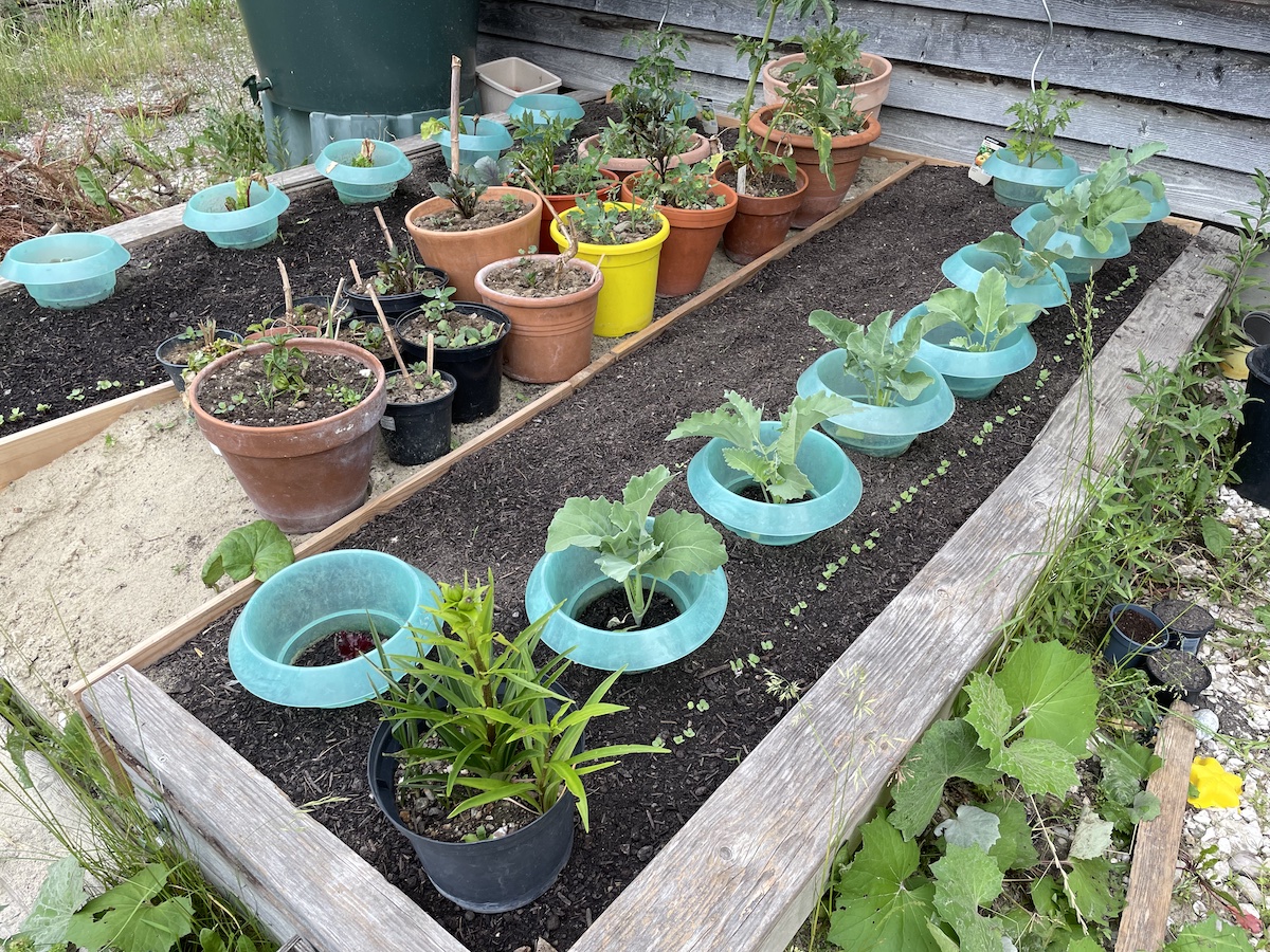 Während meine Gartenambitionen in diesem Jahr etwas zurückhaltend sind, legt die Tochter richtig los. Neben meinem Bürofenster stehen noch lauter Pflanzenbabies in Töpfchen, die darauf warten, ausgepflanzt zu werden. Ausserdem hat sie unseren Sandkasten zu einem Beet umgebaut. die Jungs sind eh aus dem Buddelalter heraus. Dort wachsen nun unter anderem Kohlrabi, Dahlien, Radieschen und Tomaten.